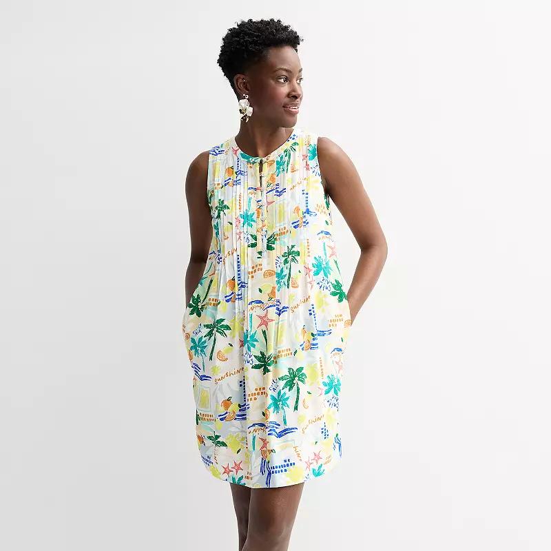 You'll love this chic and flowy women's petite Sonoma Goods For Life sleeveless pintuck dress. Click on this WOMEN'S GUIDE to find the perfect fit and more! - https://www.kohls.com/feature/womens-fit-guide.jsp. FEATURES: Button front, Henley neckline, Sleeveless, 2 side pockets, Banded straight hem, Shift silhouette. FIT & SIZING: Relaxed fit, 34 1/2-in. length from shoulder to hem, Mini length hits at the thigh. FABRIC & CARE: Linen, Rayon, Machine wash, Imported. RESPONSIBLE Supports more sustainable cotton farming. Size: XXL Petite. Color: Navy Marine Toss. Gender: female. Age Group: adult. Material: WOVEN.