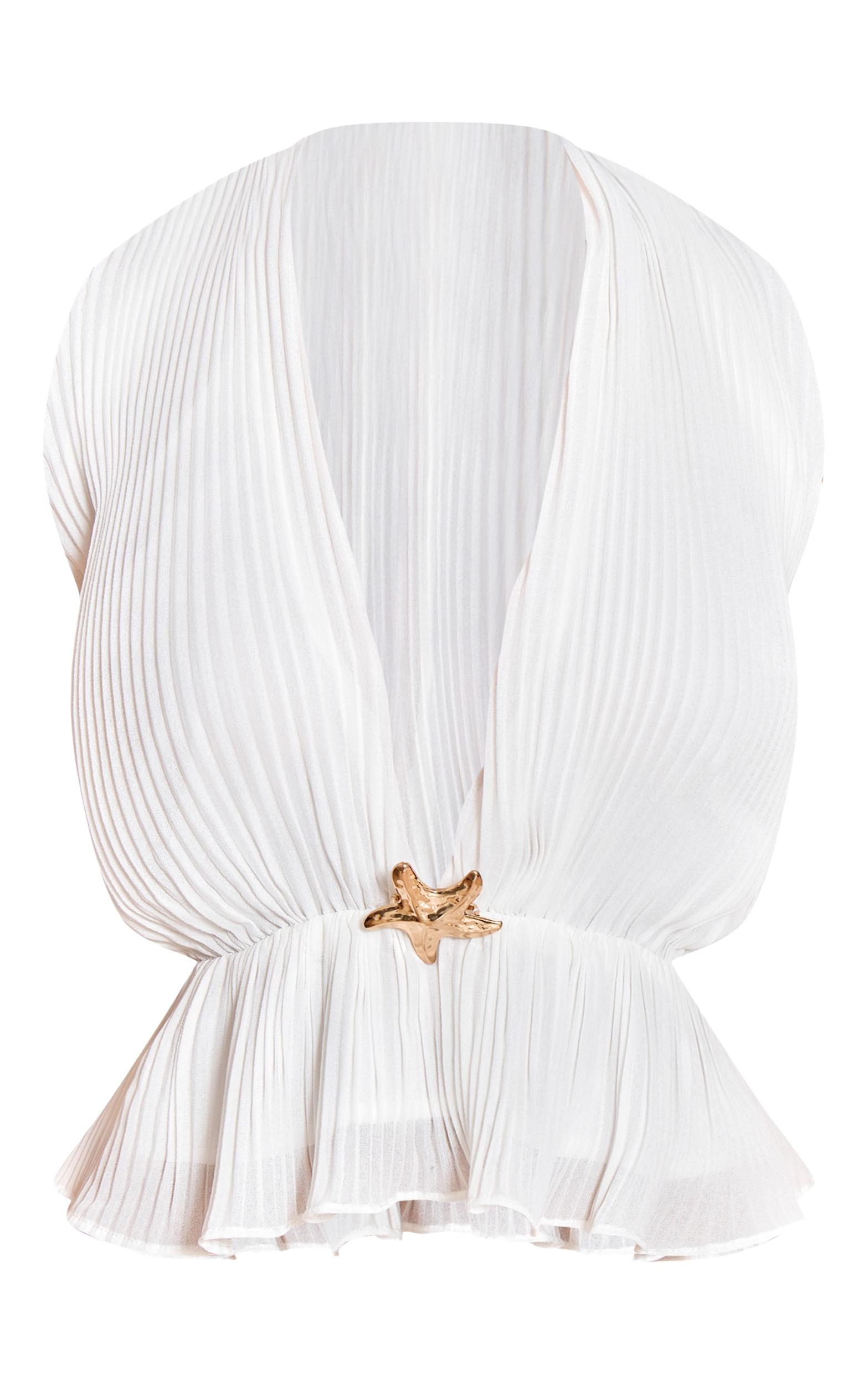 The secret to a memorable ensemble? Pure confidence, beautifully articulated. Designed for standout moments, the petite white plisse trim detail halterneck top showcases a deeply plunging V-neckline and elegant plisse pleats that create a sophisticated drape. A distinctive gold-tone starfish embellishment artfully cinches the waist, forming a chic peplum hem. Complete this knowing two piece set by styling yours with the matching plisse maxi skirt and sleek heeled sandals for a polished occasion edit.Length approx 35.5cm/14inch (Based on sample size US 2)Model wears size UK 6/ EU 34/ AUS 6/ US 2Model Height - 5ft 2inchp]:!mb-4inch>Brand: PrettyLittleThingCategory: Co-ordsProduct type: Cami TopColor: WhiteMaterial: PlisseOccasion: Occasion