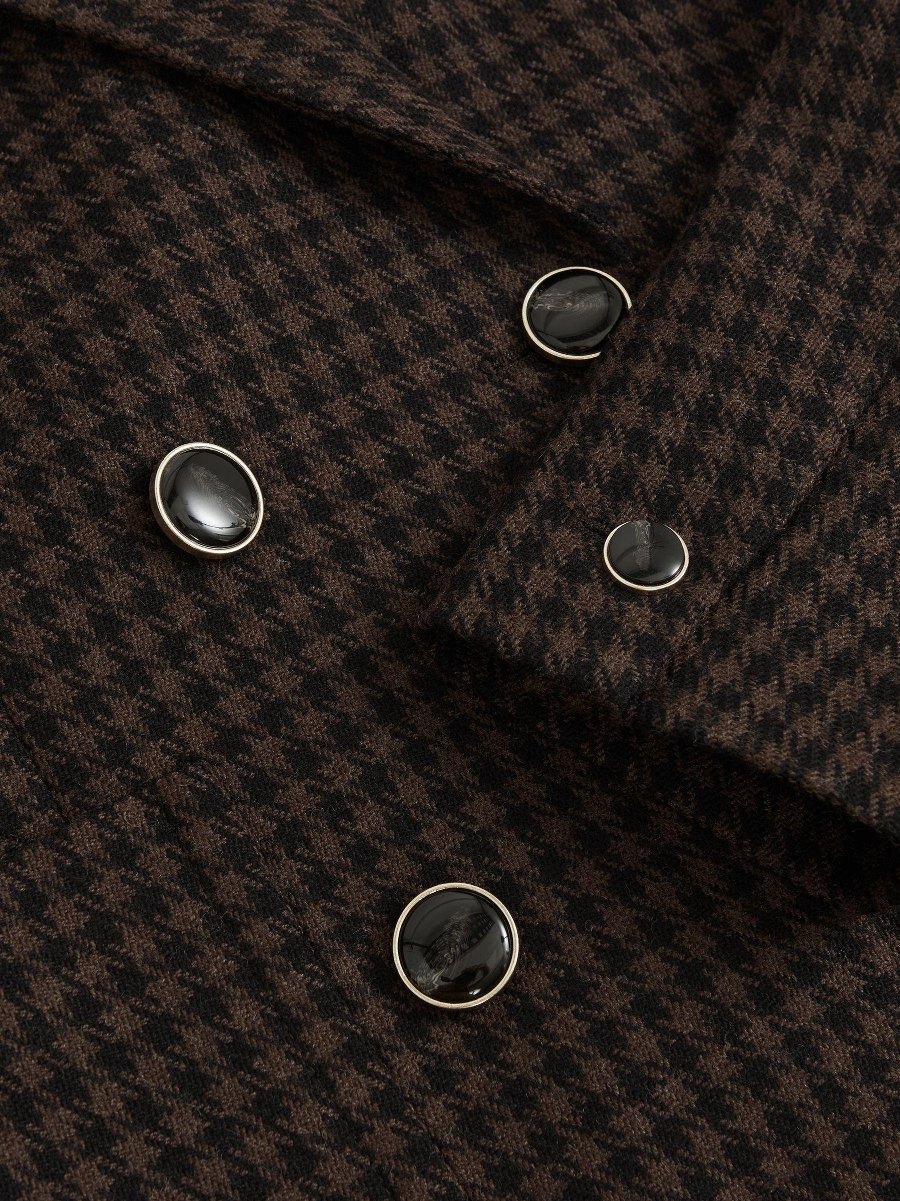 Tailored from a wool blend in a classic houndstooth check, the Ayla blazer is cut to a sharp double-breasted silhouette with a cutaway front. Peak lapels and lightly padded shoulders lend structure, while marbled buttons complete the design with considered detail. Wool blend. Houndstooth check. Double-breasted. Peak lapels. Single vent at reverse. Six front buttons. The model is wearing a size 8. Measurements of model: Height 5ft 9" / 175cm.