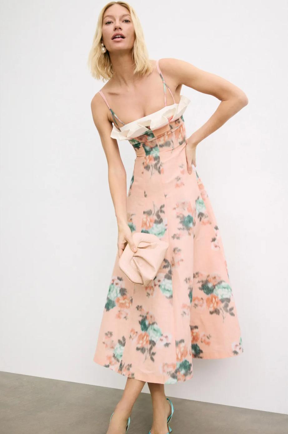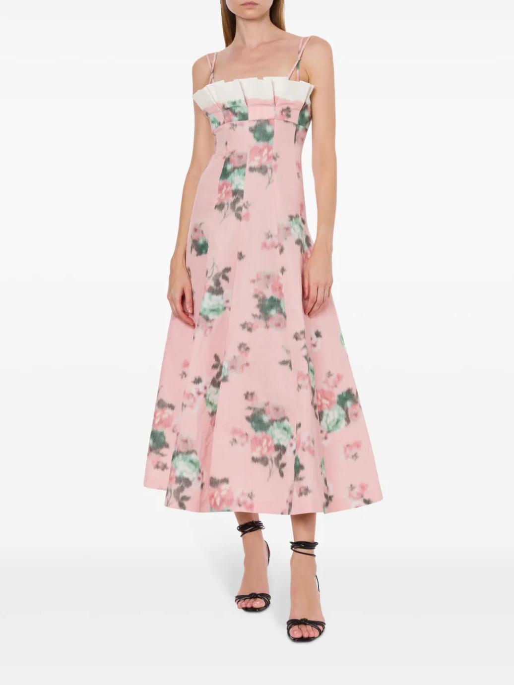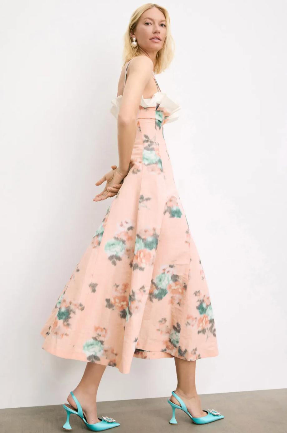 The Floral Taffeta Dress by Philosophy di Lorenzo Serafini features vibrant florals and a structured taffeta fabric for a bold, feminine look. Pair it with strappy heels and delicate jewelry for a refined yet statement-making outfit.