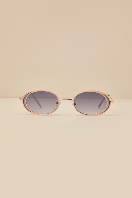 We highly recommend pairing the Lulus Pierce Rose Gold Oval Sunglasses with a chic updo and a cold drink to sip on! Shiny, rose gold-toned metal shapes these summer must-haves with oval-shaped, wire frames that create a cutout effect atop dark-tinted lenses.