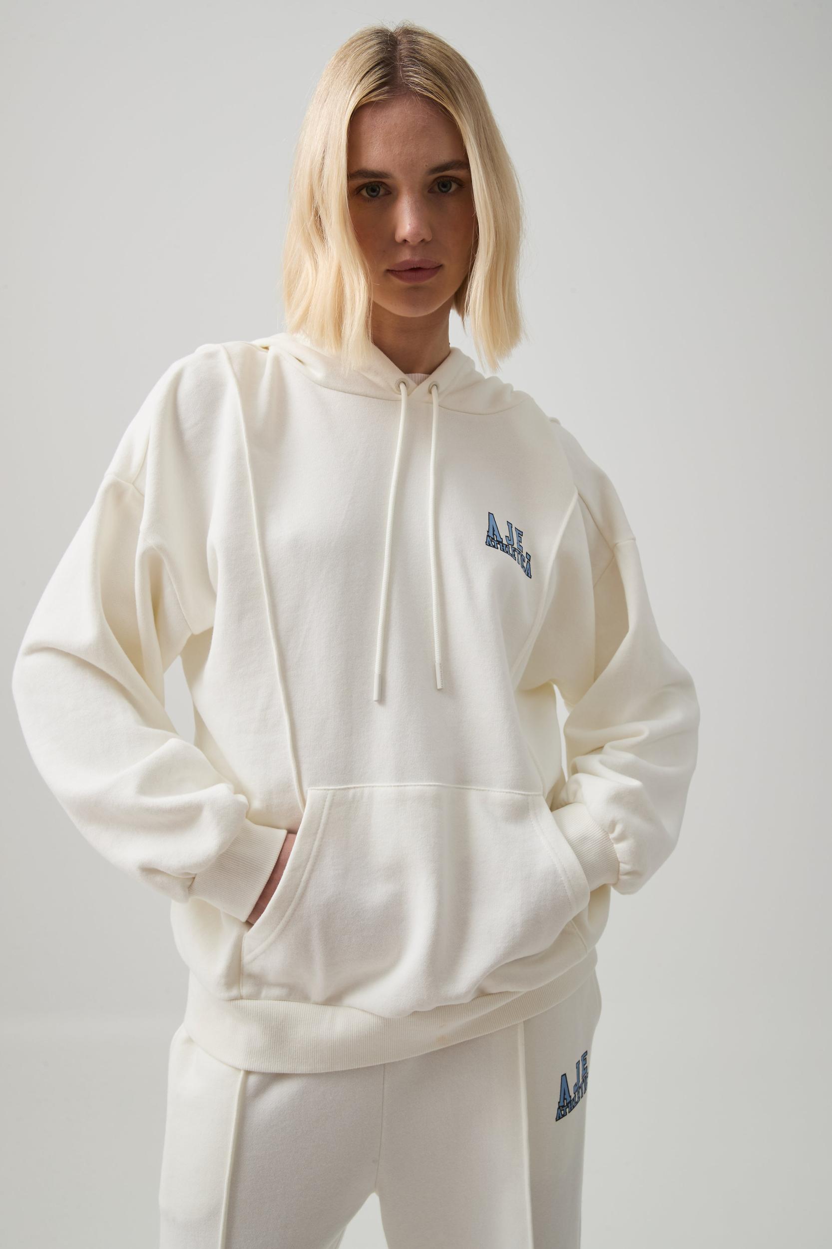 PRODUCT DETAILS Women’s hoodie Oversized fit Hood with drawcords Long sleeves Feature logo detail at front Kangaroo pockets Ribbed finishes SIZE & FIT Laura wears a size 8/S and is 176cm/5’9” FABRICATION 100% Organic Cotton