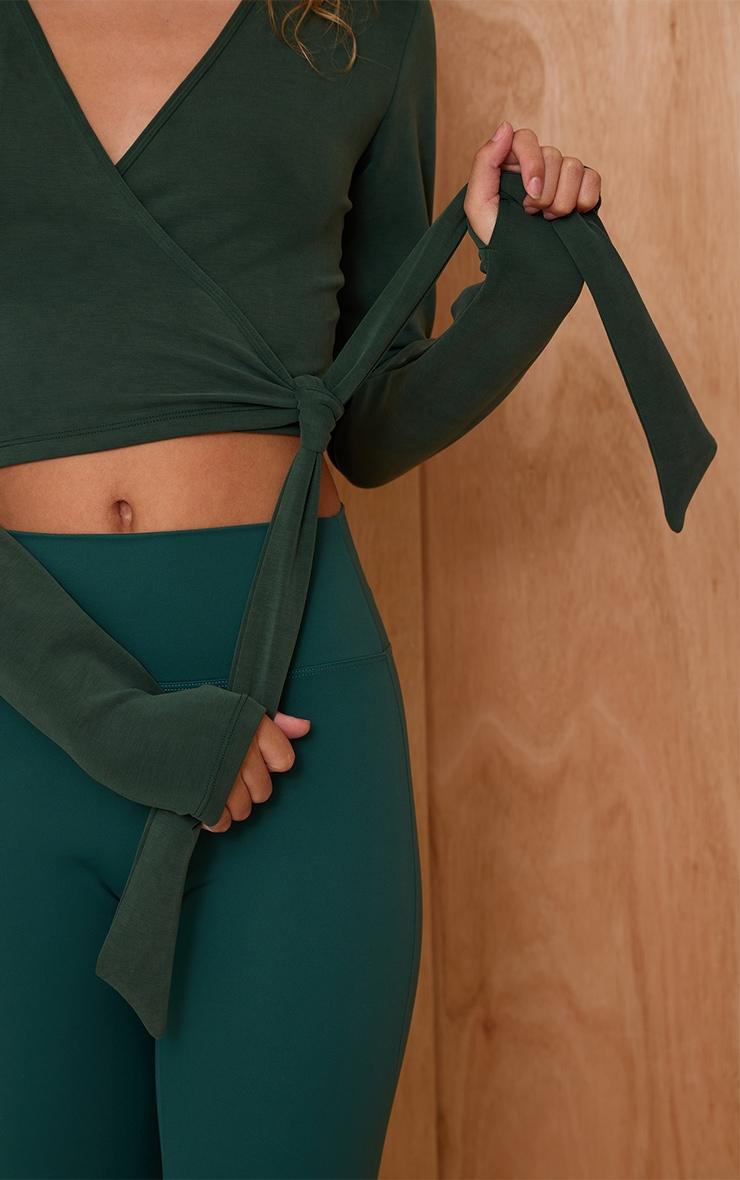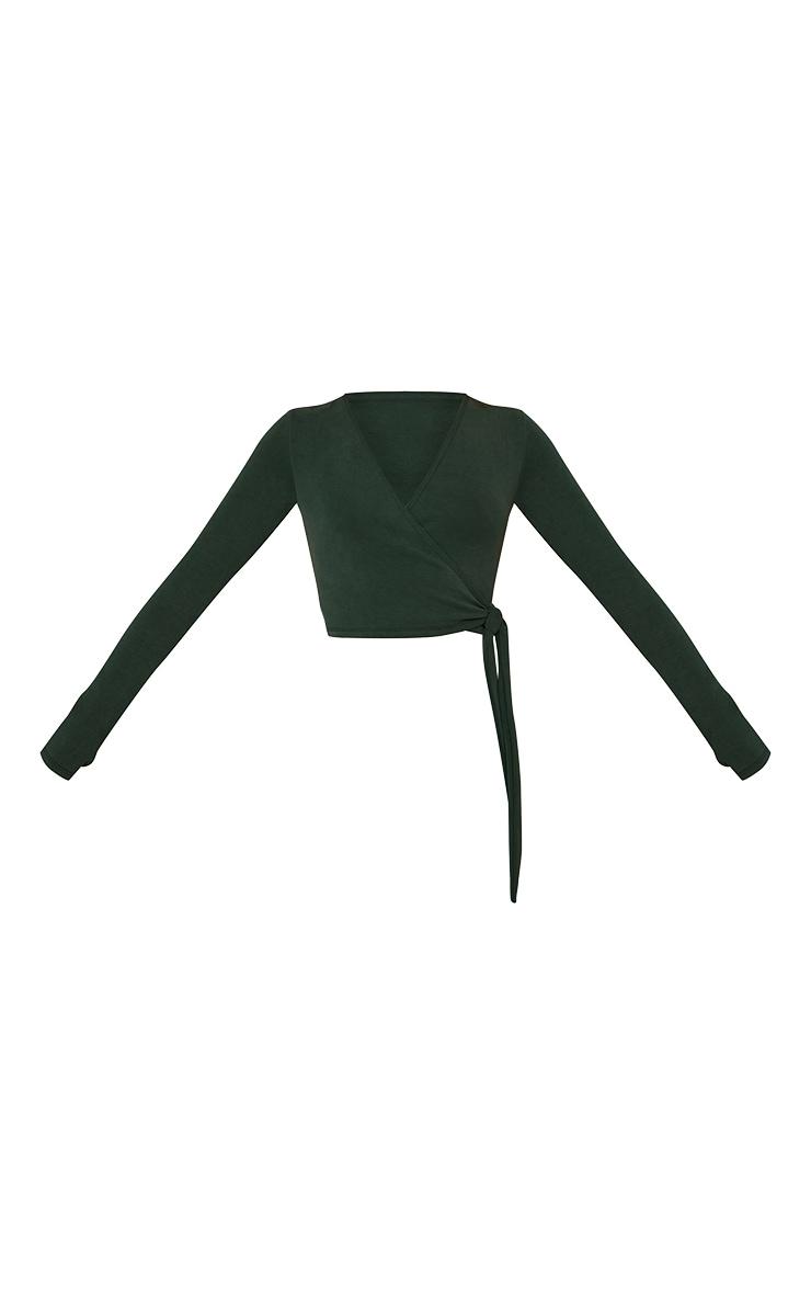 Wrap yourself in comfort with the pine green super soft wrap top. Crafted from a buttery soft jersey fabric, it features a wrap-over front, long sleeves and a fitted silhouette for versatile styling. Pair with wide leg pants and sandals for a relaxed yet refined finish.Length approx 38cm/15inch (Based on sample size S)Model wears size SModel Height - 5ft 10inchp]:!mb-4inch>Brand: PrettyLittleThingCategory: AthleisureProduct type: T-ShirtColor: Pine GreenMaterial: Slinky JerseyDesign: PlainOccasion: Day
