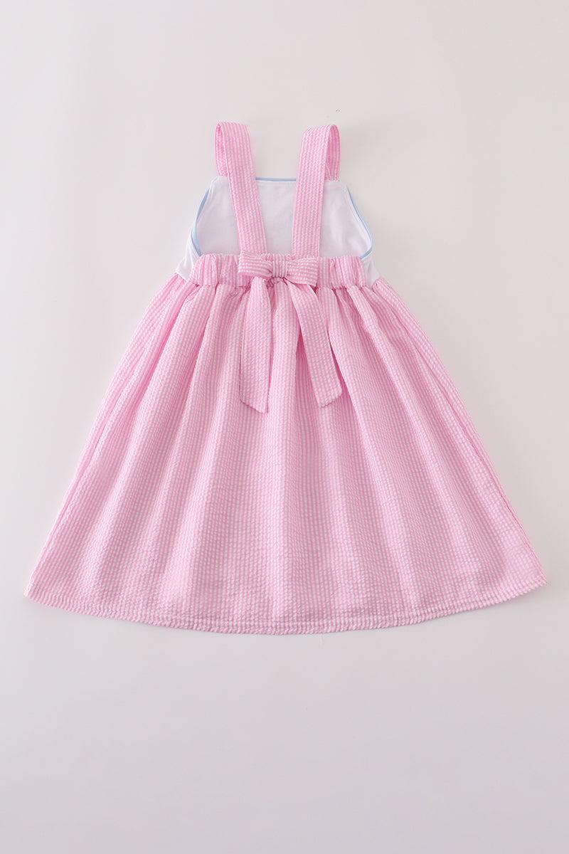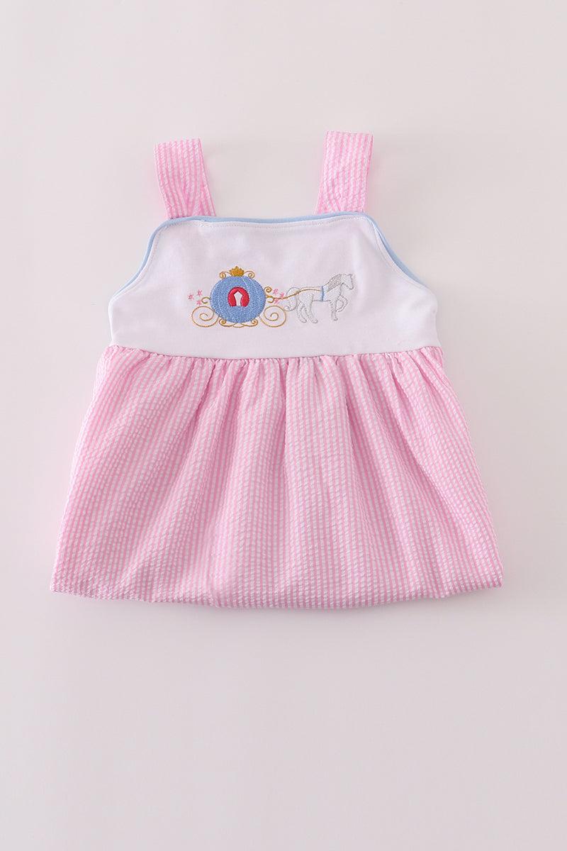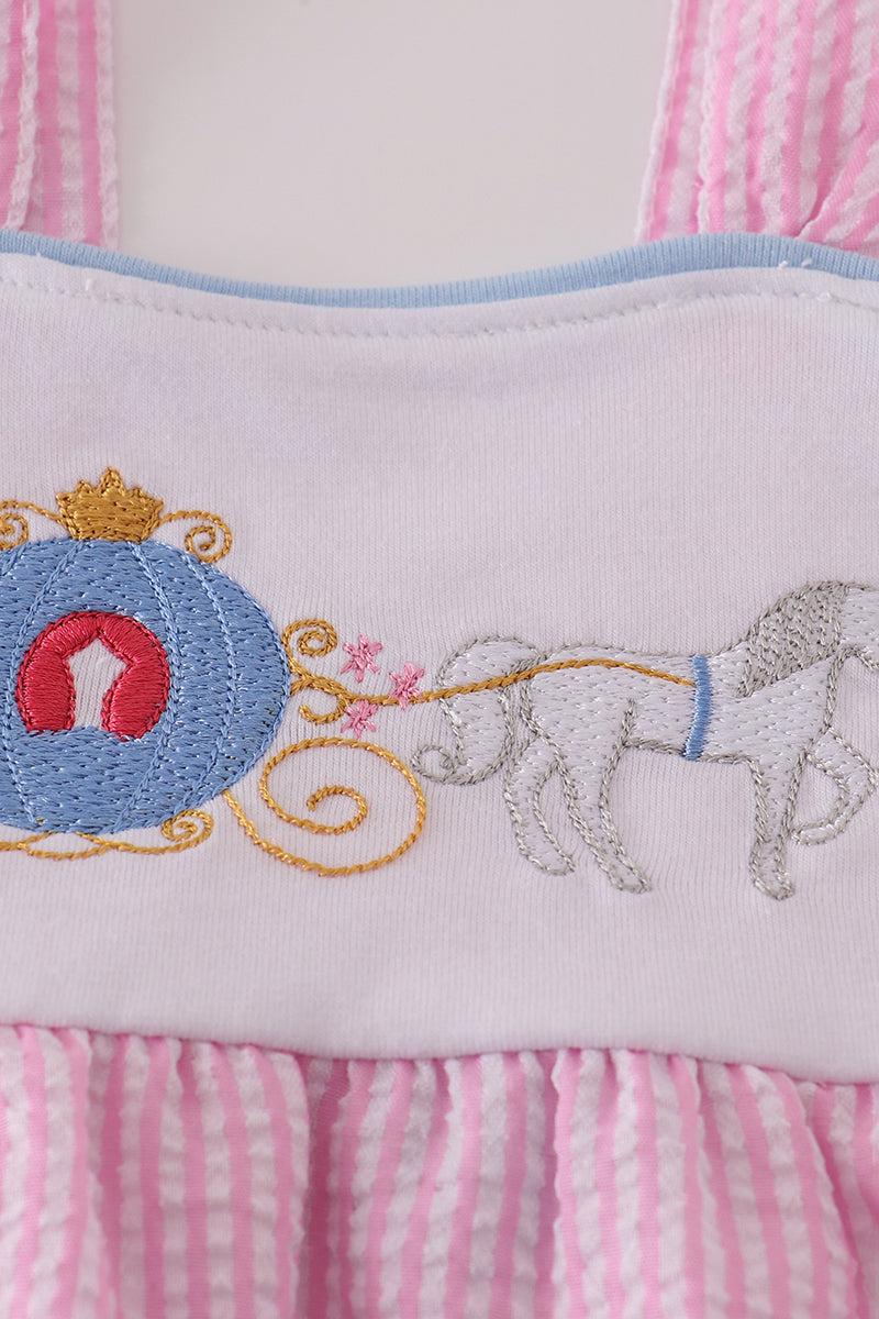 Twirl into enchantment with our Pink Pumpkin Carriage Embroidery Stripe Dress! This magical garment features delicate embroidered pumpkin carriages dancing across playful stripes. Perfect for birthday parties, special occasions, or whenever your little princess wants to feel extra special. The charming design transforms everyday moments into fairytale adventures!