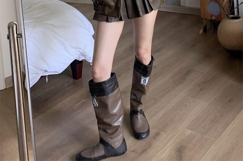 Plain Faux Leather Zip Jacket / High Rise Pleated Mini A-Line Skirt