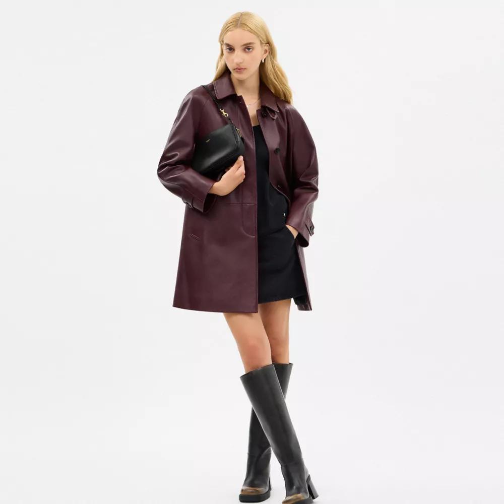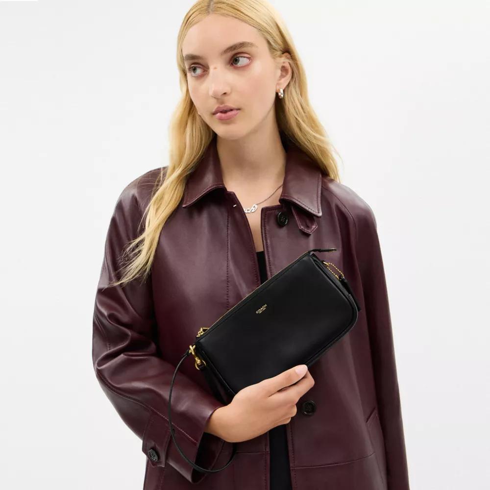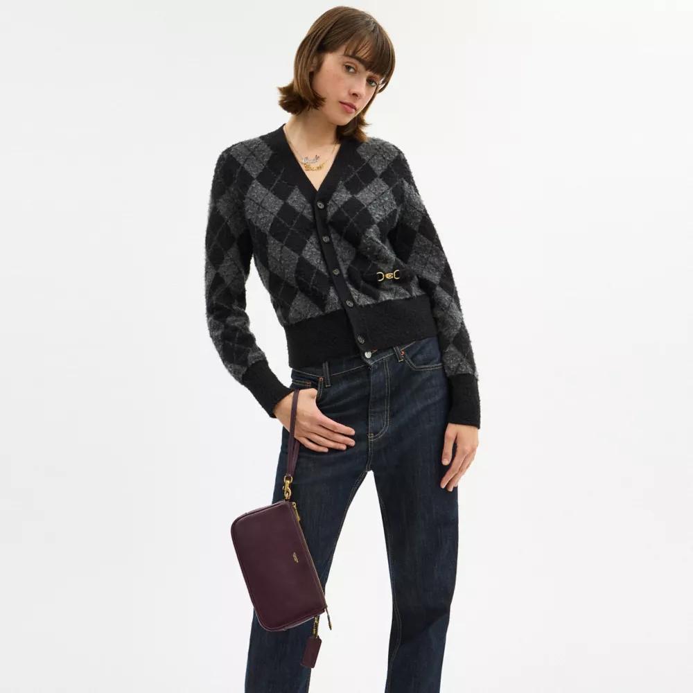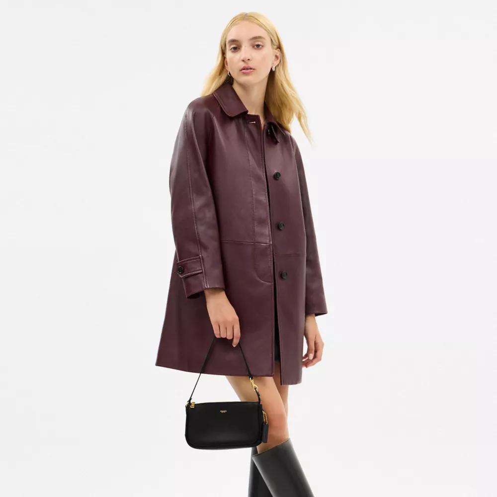 Natural grain leather Zip-top closure, fabric lining Handle with 7 3/4" drop 8 1/4" (L) x 4 3/4" (H) x 1 3/4" (W)Style No. CCC41