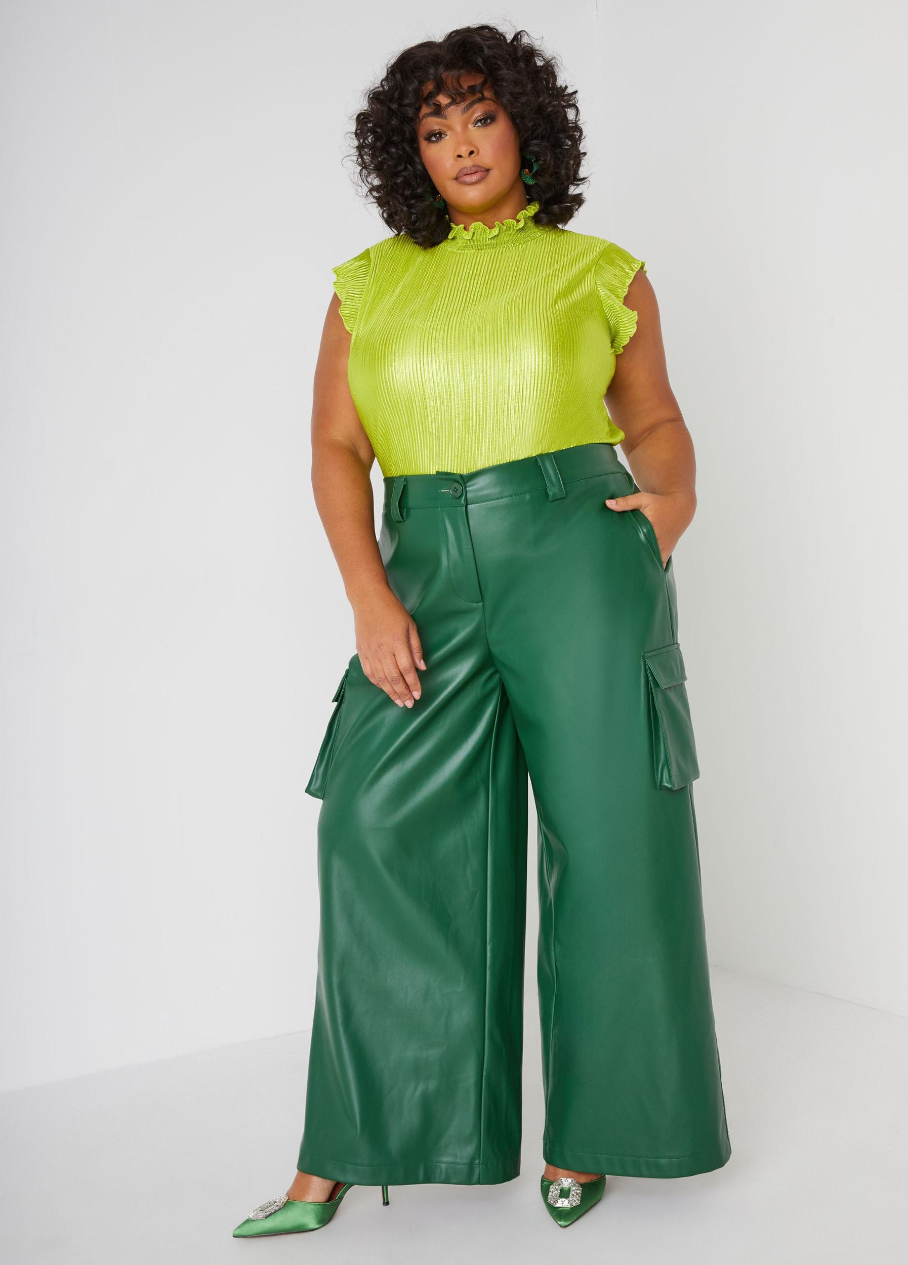 This top is designed with a shirred mock neck along the complementing plissé with metallic accents that's chic and eye-catching.