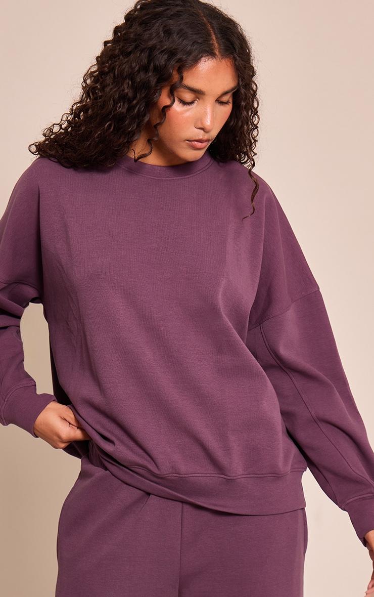 Own your everyday look with the essential comfort piece that defies expectation. The plum 350 gsm interlock Sweatshirt redefines relaxed sophistication with its deep purple hue, classic crew neckline, and an effortlessly oversized fit designed for confident movement. Featuring subtly dropped shoulders, this versatile piece offers a modern silhouette perfect for any day occasion. Pair yours with crisp wide-leg pants for a refined casual aesthetic or embrace the full athleisure vibe with matching sweatpants. Complete your ensemble with sleek sneakers for a low-key feel or step up your edge with a pair of chunky boots and a simple gold ring for an understated yet polished finish.Length approx 48.5cm/19inch (Based on sample size S)Model wears size SModel Height - 5ft 10inchp]:!mb-4inch>Brand: PrettyLittleThingCategory: AthleisureProduct type: SweatColor: PlumMaterial: Cotton JerseyOccasion: Day