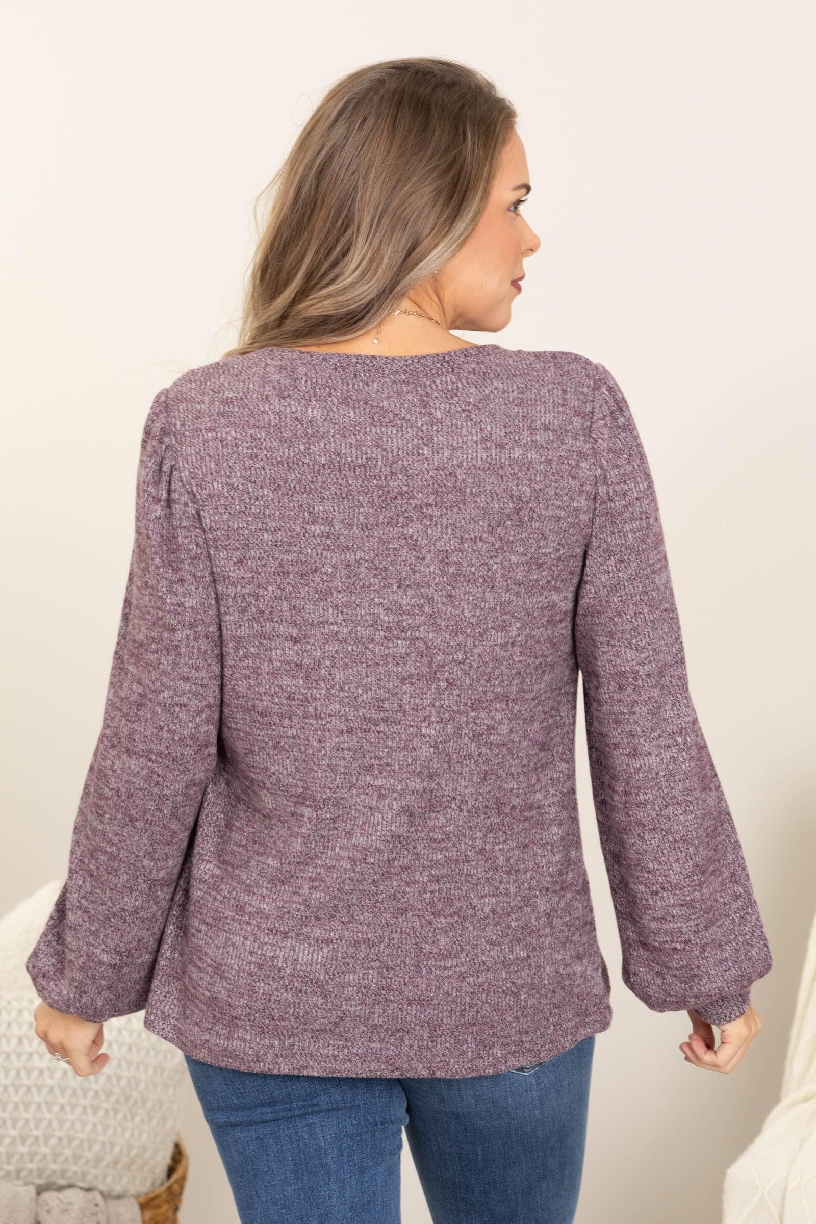 Product Details Colors: Plum Print: Hacci Neckline: Round Sleeve: Long Sleeve Hemline: Straight Brand: Filly Flair Material and Care 60% Polyester 35% Cotton 5% Spandex Machine Wash Cold Hang/Line Dry Size and Fit Small: Bust 38" Waist 38" Length 27" Medium: Bust 40" Waist 40" Length 27.5" Large: Bust 42" Waist 42" Length 28" X Large: Bust 44" Waist 44" Length 28.5" 2XL: Bust 48" Waist 48" Length 29" 3XL: Bust 50" Waist 50" Length 29.5" Erica is 5’7” and wearing her true size small Kristen is 5’2 and wearing her true size X Large