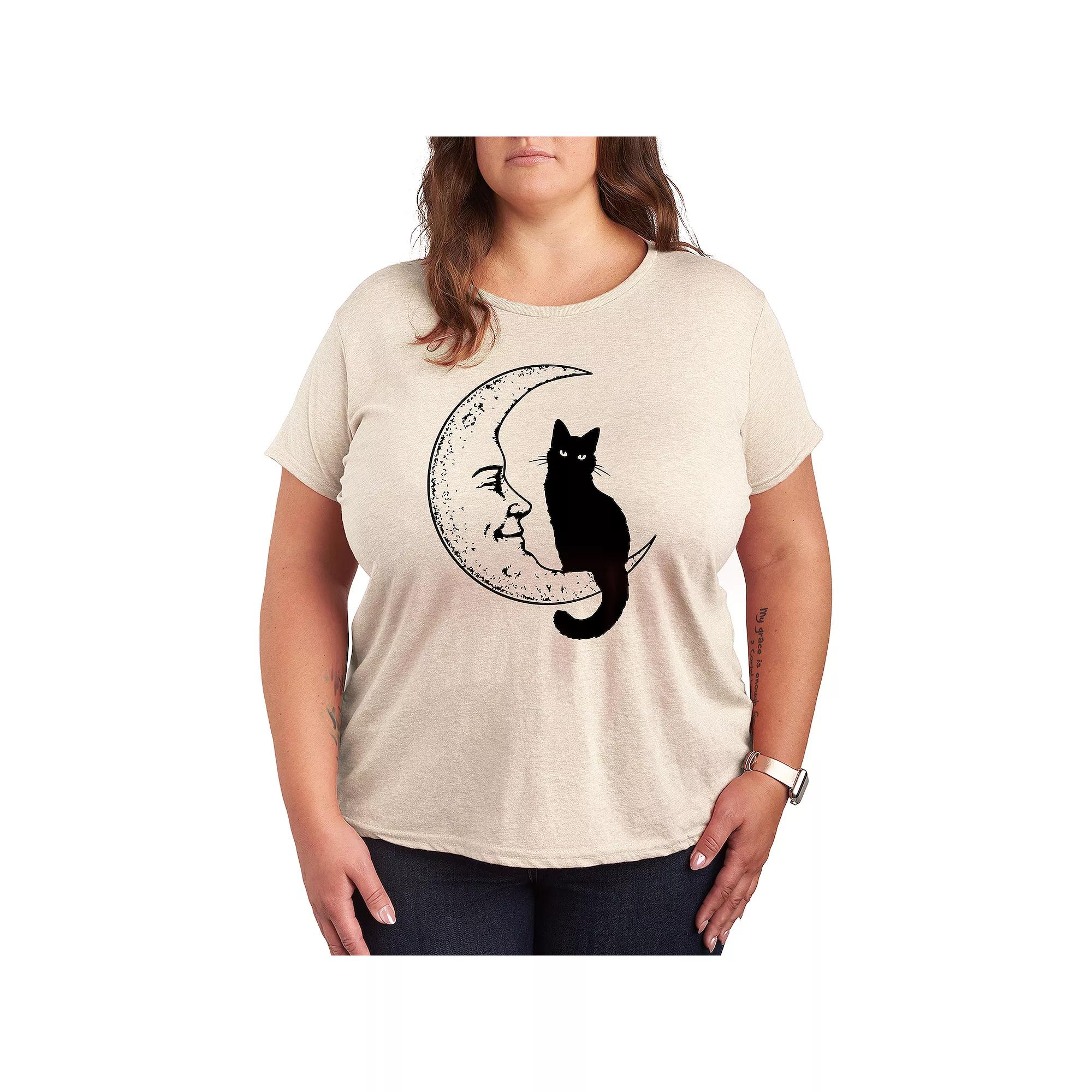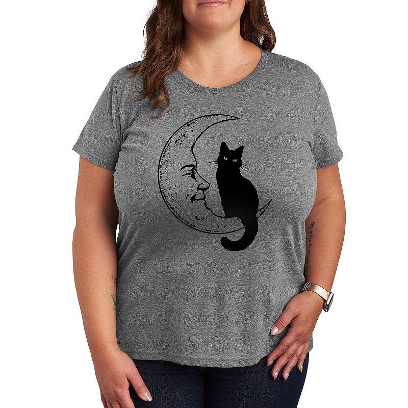 Plus Black Cat On Moon Graphic Tee, Women's,