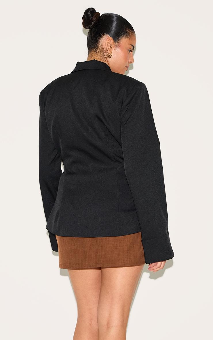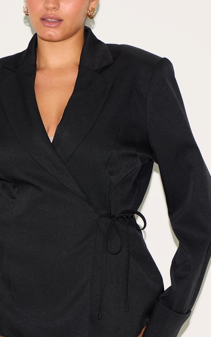 A commanding outer layer designed for impactful presence. The plus black super boxy tie side blazer carves a distinct line with its amplified shoulder and exaggerated boxy cut, featuring classic lapels that form a confident V-neckline. This sharp structure is offset by the adjustable side tie, allowing you to cinch the waist and define the wrap-over shape which holds its form. Throw this knowing piece over a simple black cami and tailored black pants, finishing the look with sharp pointed heels ready for evening confidence.Length approx 85cm/33.5inch (Based on sample size US 12)Model wears size UK 16/ EU 44/ AUS 16/ US 12Model Height - 5ft 9inchp]:!mb-4inch>Brand: PrettyLittleThingCategory: OuterwearProduct type: Fitted BlazerColor: BlackMaterial: Tailored WovenOccasion: Evening