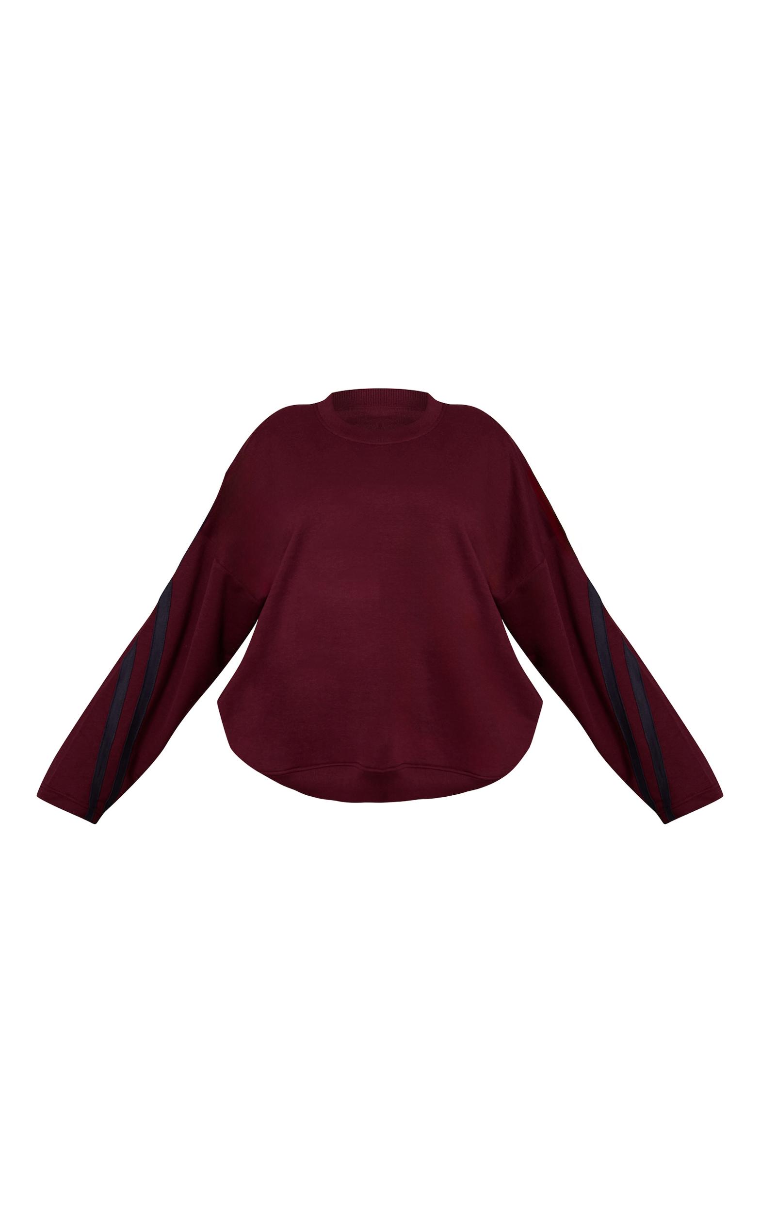 Keep it relaxed in the plus burgundy contrast striped oversized sweatshirt. Made from a burgundy material with contrast stripes, it features an oversized fit, crew neckline, and long sleeves. Style with slip on mule heels and a clutch bag for a polished off-duty look.Length approx 58.5cm/23inch (Based on sample size XL)Model wears size XLModel Height - 5ft 9inchp]:!mb-4inch>Category: AthleisureProduct type: SweatColor: BurgundyMaterial: Fleeceback SweatDesign: PlainOccasion: Day