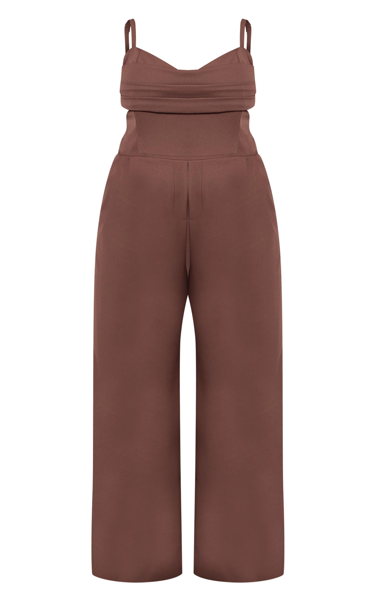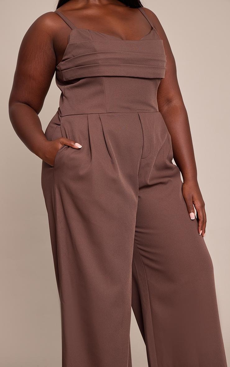 Command attention in the plus chocolate tailored panel detail wide leg jumpsuit. This chocolate piece features a tailored panel bust with delicate straps, designed with a flattering wide-leg cut and pleats. It's the ultimate choice for exclusive dinner dates or sophisticated evening events. Elevate the look with gold heels and a pair of delicate gold bracelets.Length approx 155cm/61inch (Based on sample size US 12)Model wears size UK 16/ EU 44/ AUS 16/ US 12Model Height - 5ft 9inchp]:!mb-4inch>Brand: PrettyLittleThingCategory: DressesProduct type: Tailored JumpsuitColor: ChocolateMaterial: Tailored WovenOccasion: Evening