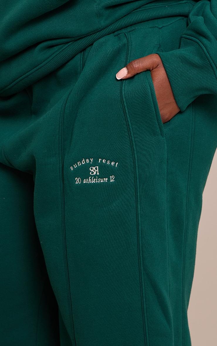 Upgrade your relaxed rotation with the plus forest green sunday reset embroided wide leg sweatpant. Brought to you in a forest green hue, these sweatpants offer a wide leg silhouette with seam detailing down the front and subtle embroidered touches. Whether you're chilling at home or grabbing brunch, this piece is your go-to for effortless comfort. Style with the matching hoodie, fresh sneakers, and your favorite everyday accessories for a complete relaxed vibe.Length approx 86.5cm/34inch (Based on sample size XL)Model wears size XLModel Height - 5ft 9inchp]:!mb-4inch>Brand: PrettyLittleThingCategory: AthleisureProduct type: Wide Leg JoggersColor: Forest GreenMaterial: Cotton JerseyOccasion: Day