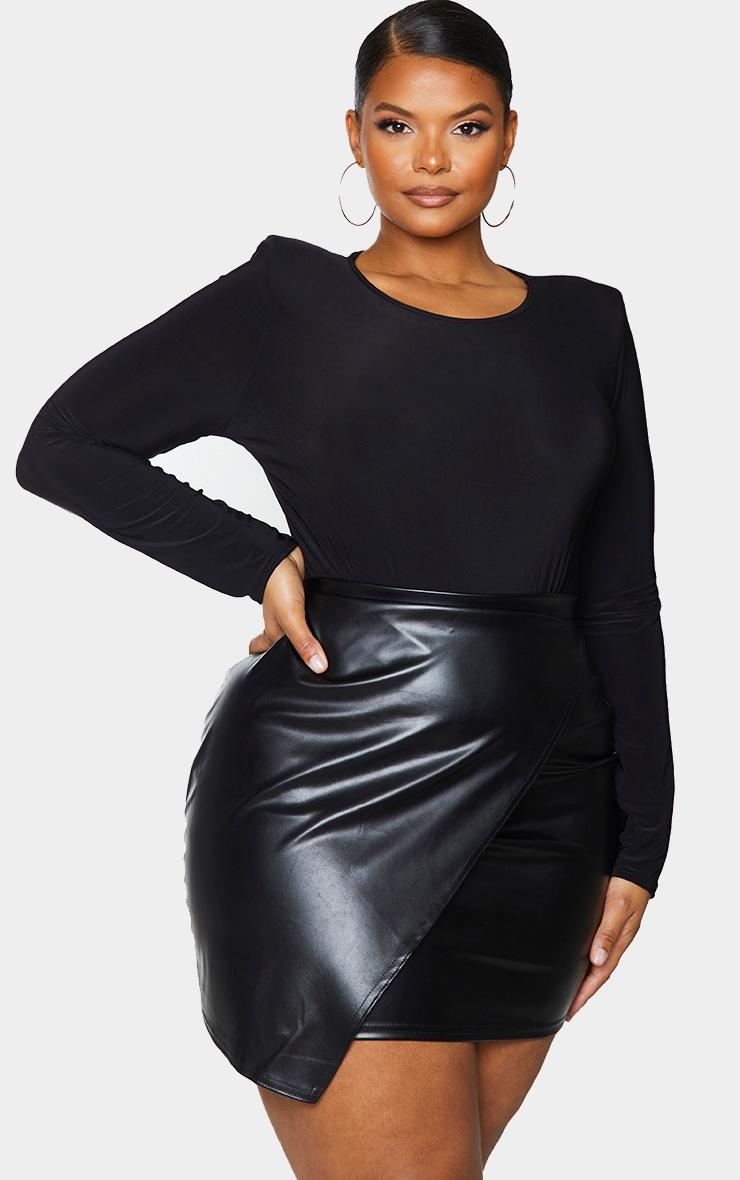 Give your date night look a fierce update with this mini skirt. Featuring a faux leather material with a wrap over design and a mini fit. Style this with a lace bodysuit and strappy heels to complete the look. Length approx 46cm/18inch (Based on a sample size UK 16)Model wears size UK 16/ EU 44/ AUS 16/ US 12Model Height - 5ft 9inchp]:!mb-4inch>Category: BottomsProduct type: Mini SkirtColor: BlackDesign: PlainOccasion: Evening