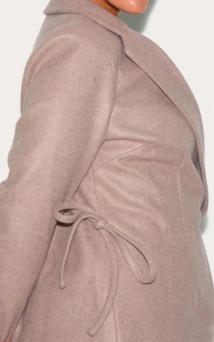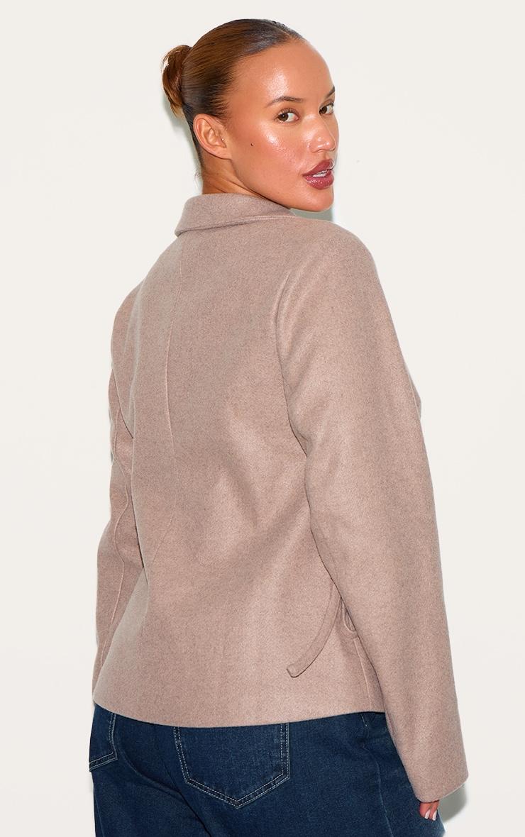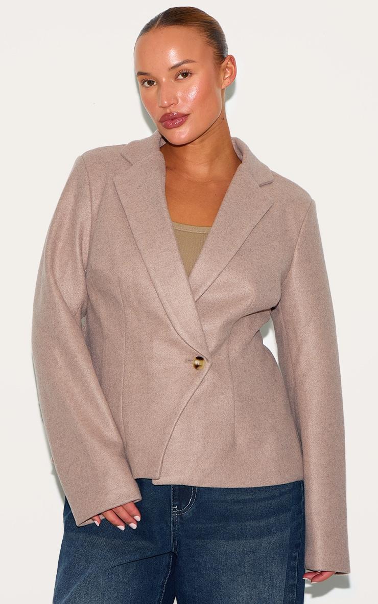 Consider this your cue to elevate everyday dressing. This mushroom-hued blazer, rendered in a textural wool-look fabric, offers a masterclass in considered tailoring. The cinched waist creates a defined silhouette, lending a touch of structure to its relaxed aesthetic. Style yours with wide-leg pants from our bottoms collection for an effortlessly chic take on modern power dressing. Length approx 58cm/23inch (Based on sample size US 12)Model wears size UK 16/ EU 44/ AUS 16/ US 12Model Height - 5ft 6inchp]:!mb-4inch>Category: OuterwearProduct type: Fitted BlazerColor: MushroomMaterial: Faux WoolSleeves: LongOccasion: Day