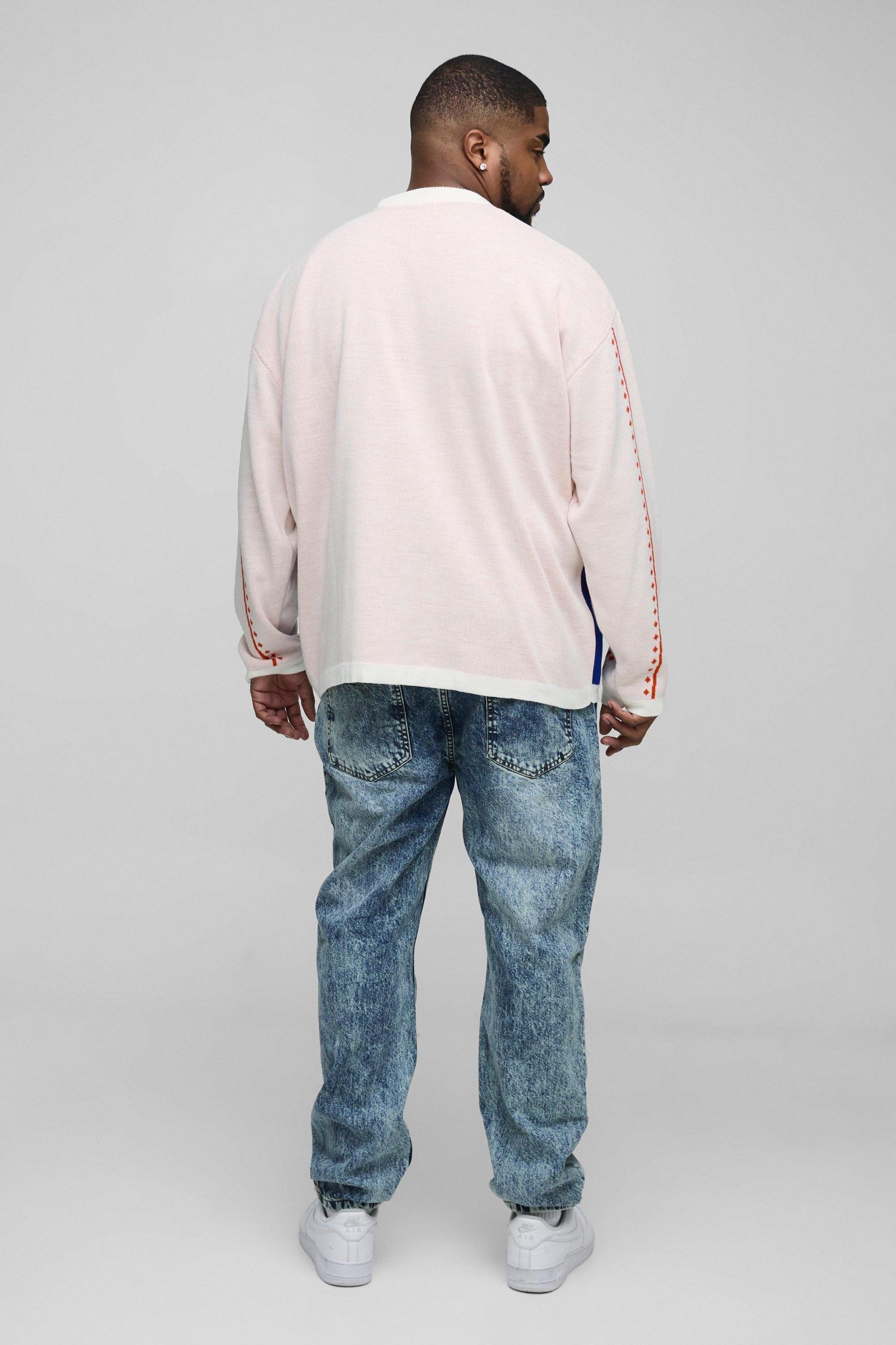 Plus Oversized Moto Knitted Long Sleeve T-Shirt | boohooMAN USA