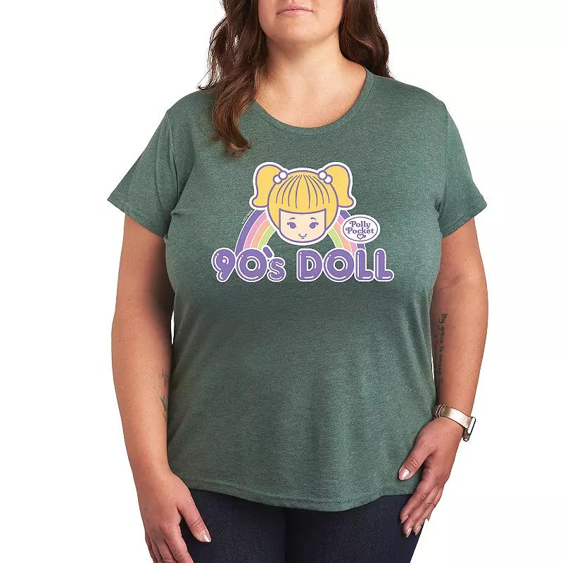 Plus Polly Pocket 90s Doll Graphic Tee, Womens Grey Green