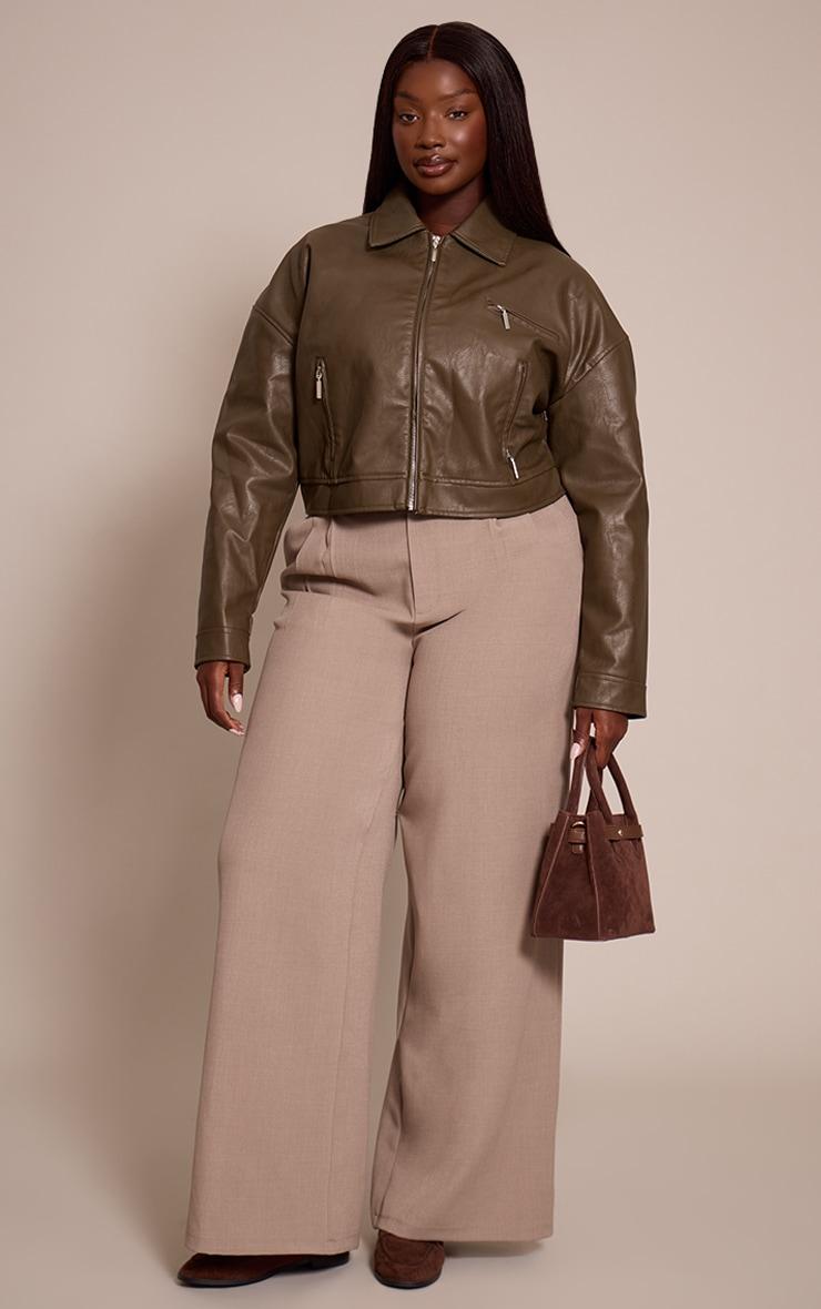 This plus sage green textured faux leather zip up minimal biker jacket is at the top of our new season wish list. Made from a sage green textured faux leather material with a zip up design and a biker style, what more could you want? Just add this biker jacket to your outfit of the day for a chic finishing touch to any look. Length approx 58cm/23inch (Based on sample size US 12)Model wears size UK 16/ EU 44/ AUS 16/ US 12Model Height - 5ft 9inchp]:!mb-4inch>Brand: PrettyLittleThingCategory: OuterwearProduct type: Biker JacketColor: StoneSleeves: LongOccasion: Day