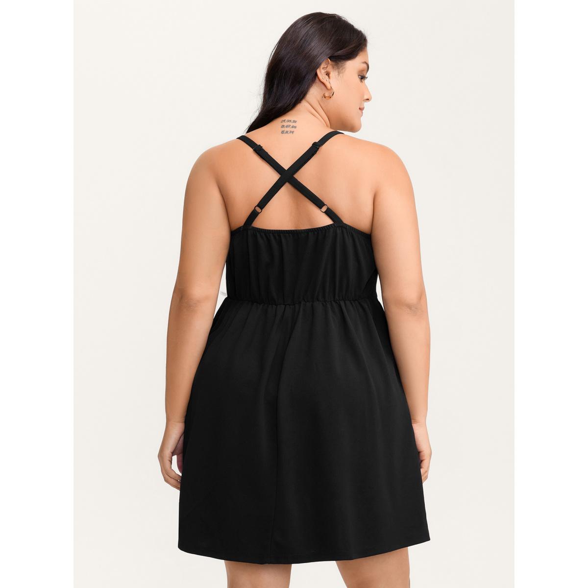Plus Size 2-in-1 Adjustable Straps Mini Dress Black Women Timeless Gathered Non Sleeveless Curvy BloomChic 22-24/3X