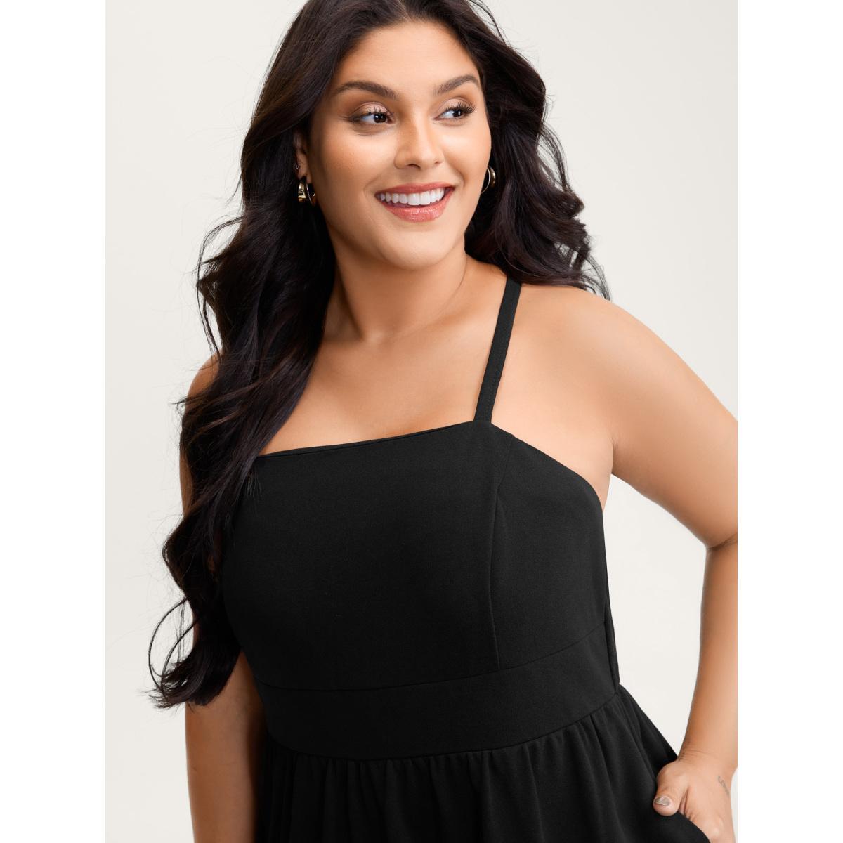 Plus Size Supersoft Essentials Plain Adjustable Straps Dress Black Women Casual Non Sleeveless Curvy BloomChic 14-16/1X