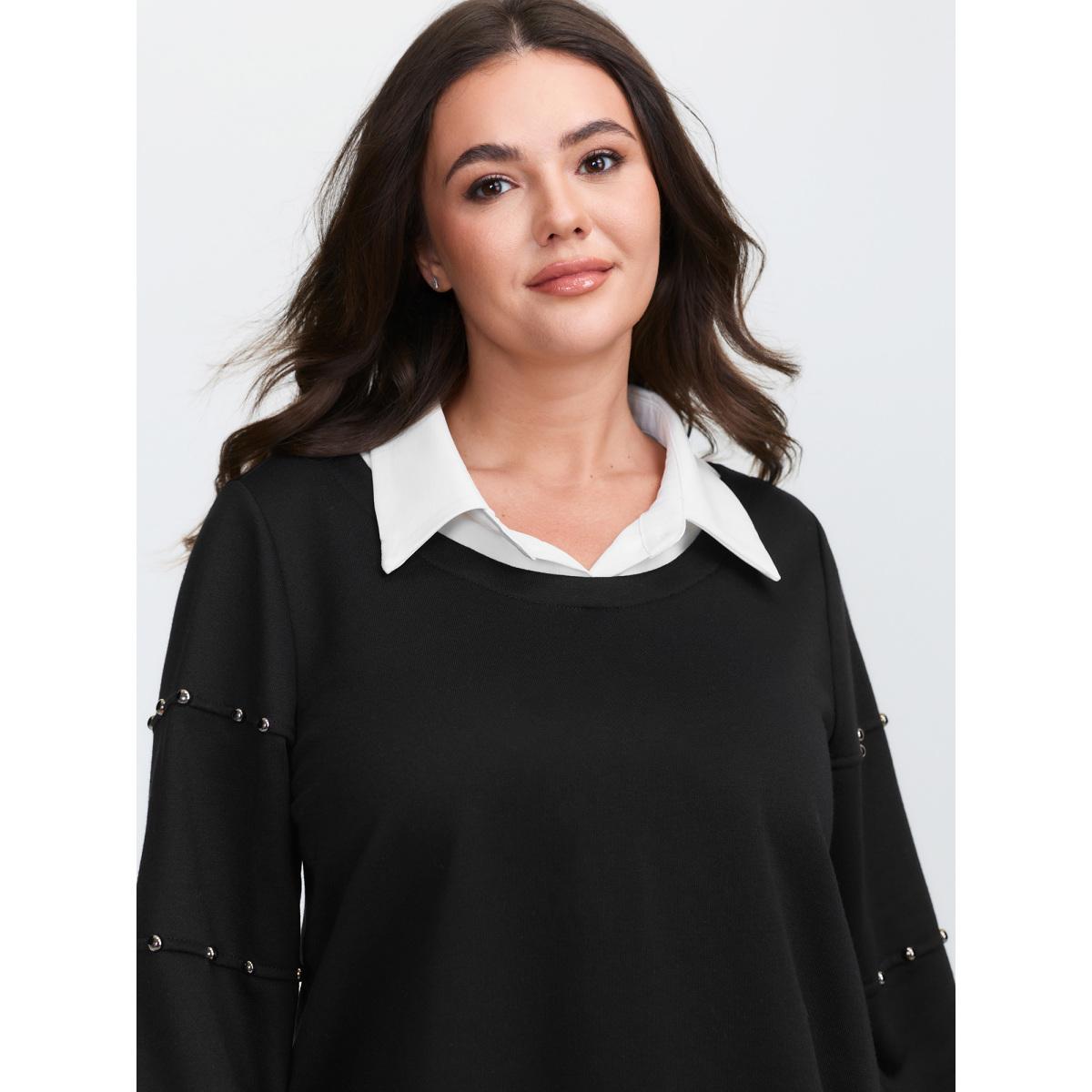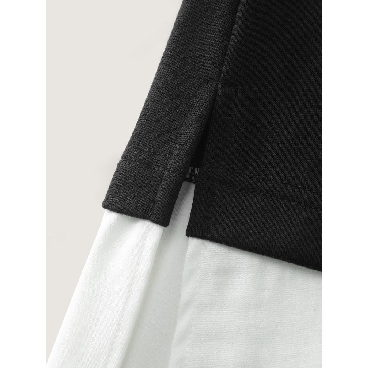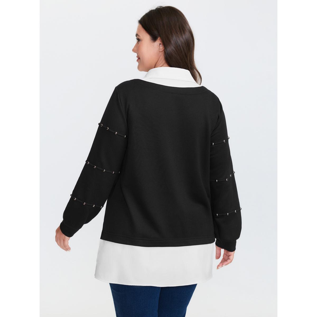 Plus Size 2-in-1 Layered Contrast Collar Sweatshirt Women Black Leisure Contrast Shirt collar Casual Sweatshirts BloomChic 22-24/3X