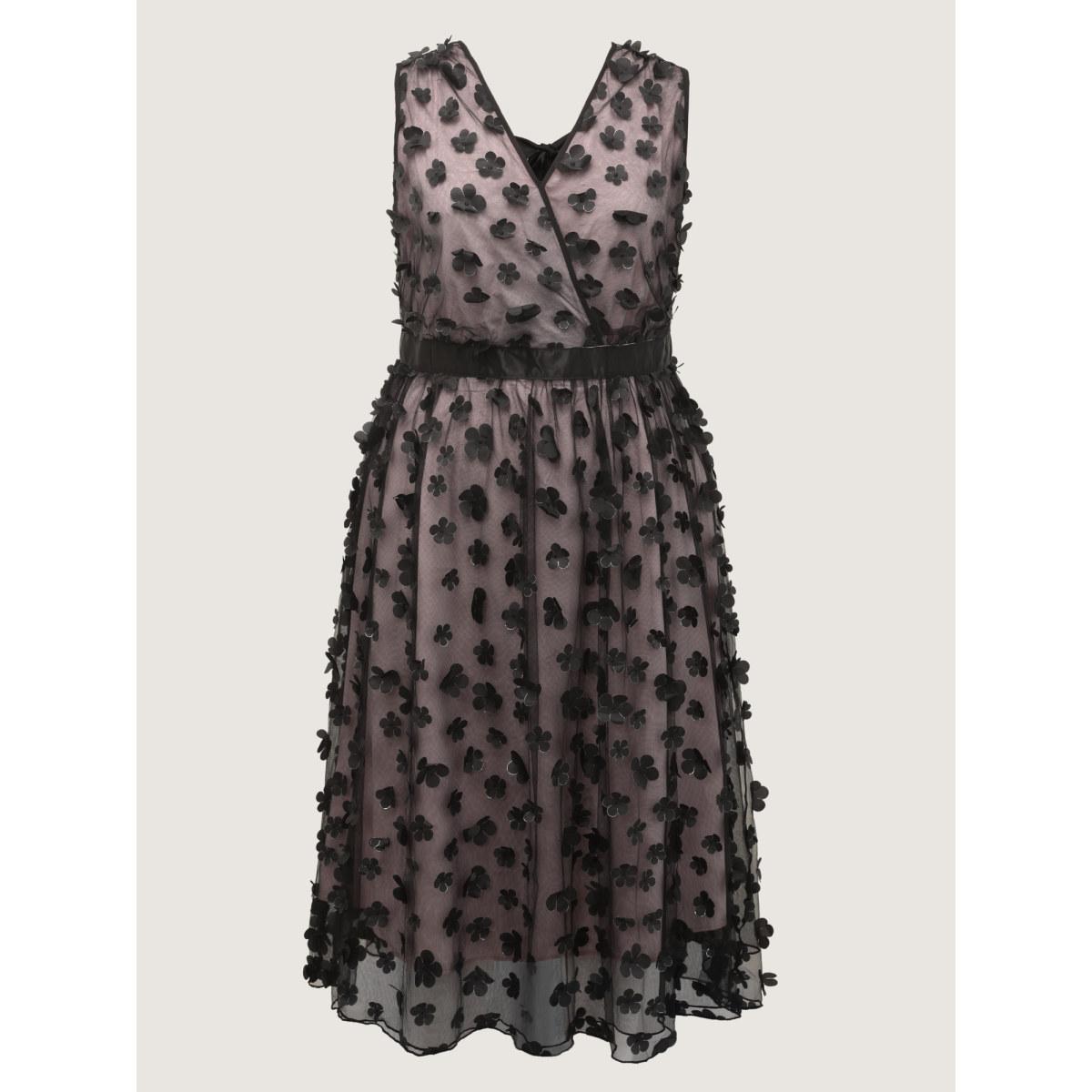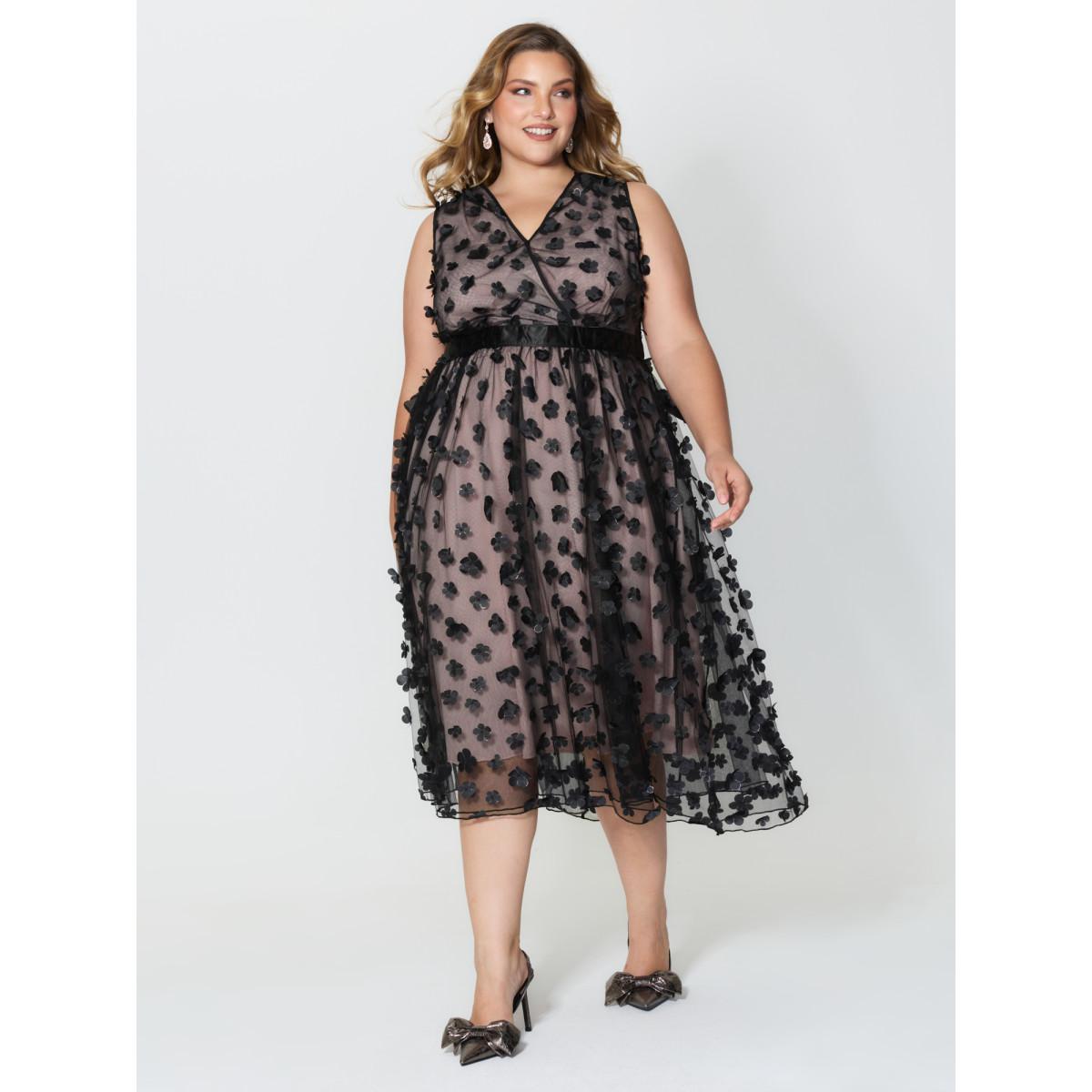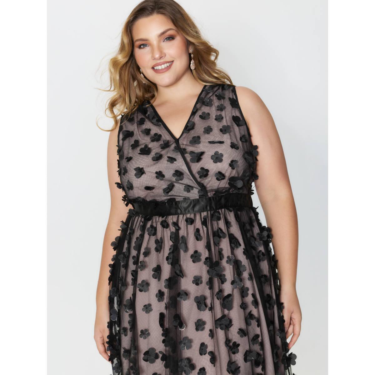 Plus Size 3D Floral Back-Tie Sheer Midi Dress MistyRose Women Formal V-neck Sleeveless Curvy BloomChic 12/L