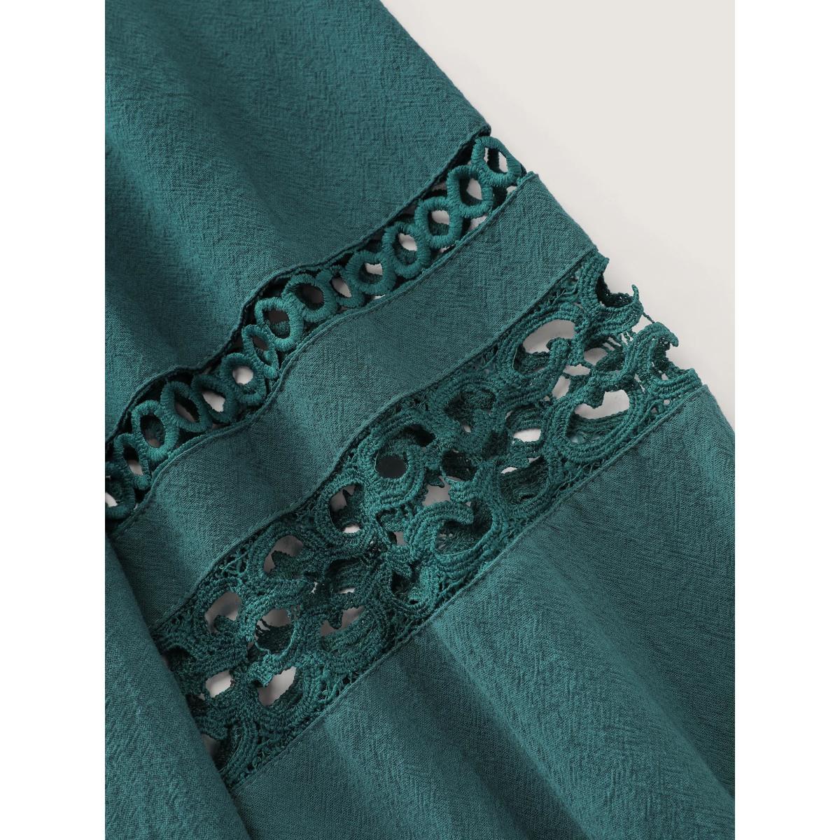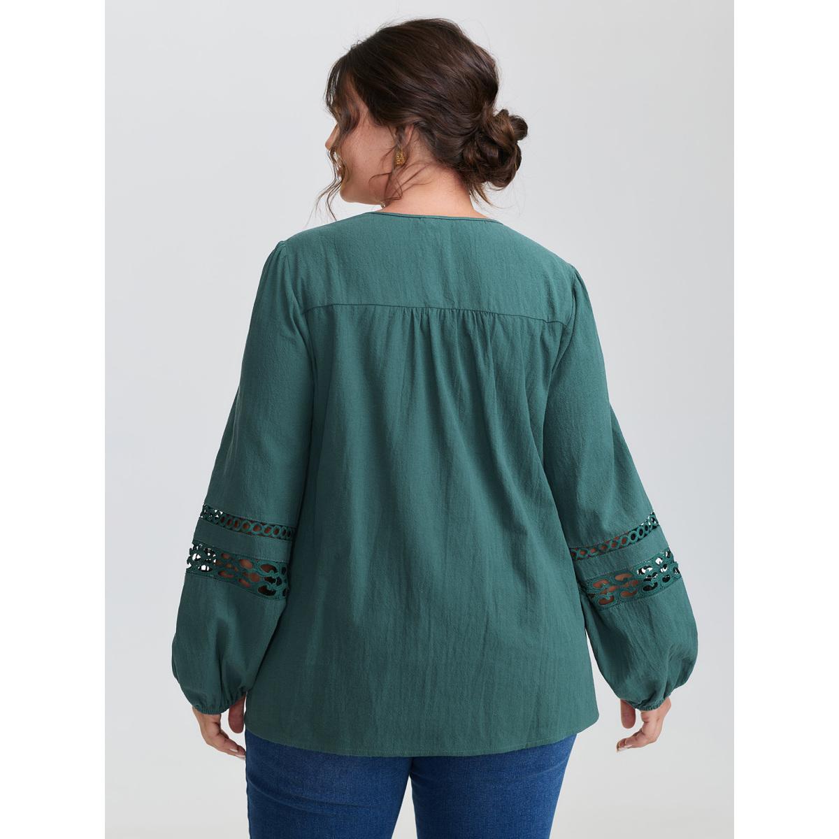 Plus Size Aegean Cotton Lace Trim Button Placket Blouse Women Extra Long Sleeve Flat collar with V-notch Elegant Blouses BloomChic 22-24/3X