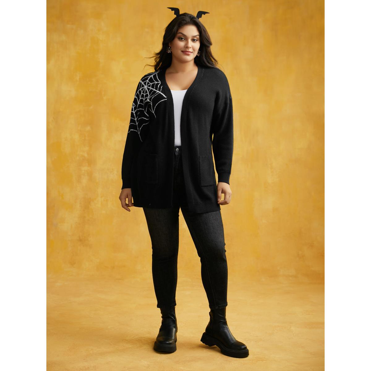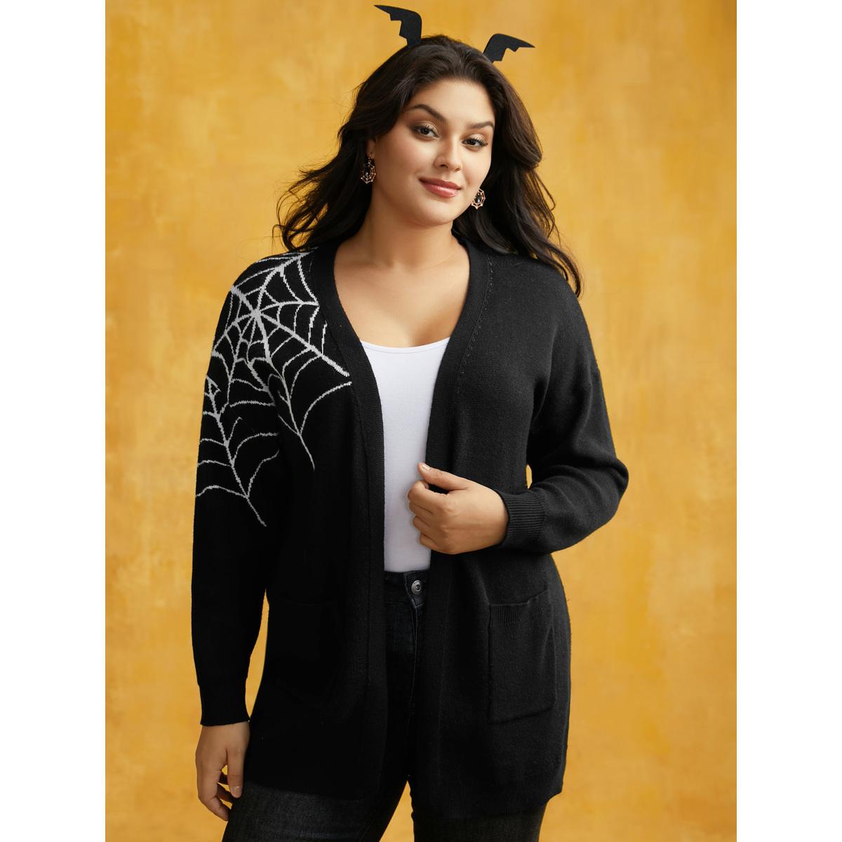 Plus Size After Midnight Bat Jacquard Printed Cardigan Black Women Casual Loose Long Sleeve Everyday Cardigans BloomChic 28/5X