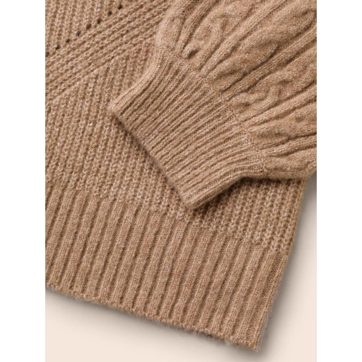 Plus Size Cable Knit Drop Shoulder Patch Pocket Cardigan Apricot Women Casual Loose Long Sleeve Everyday Cardigans BloomChic 30/6X