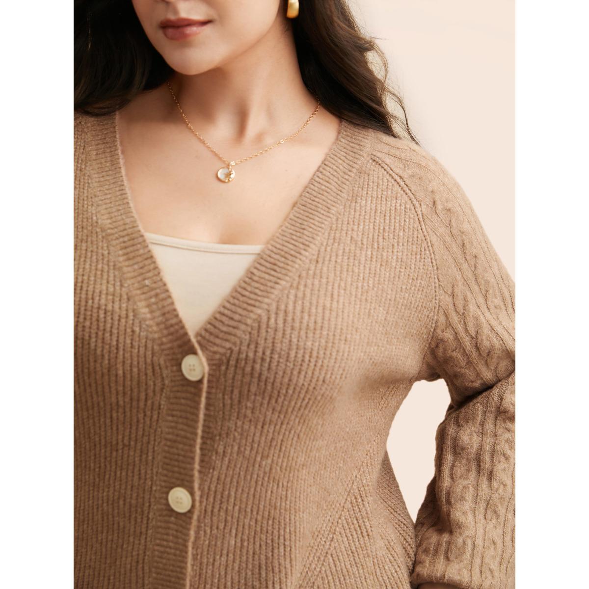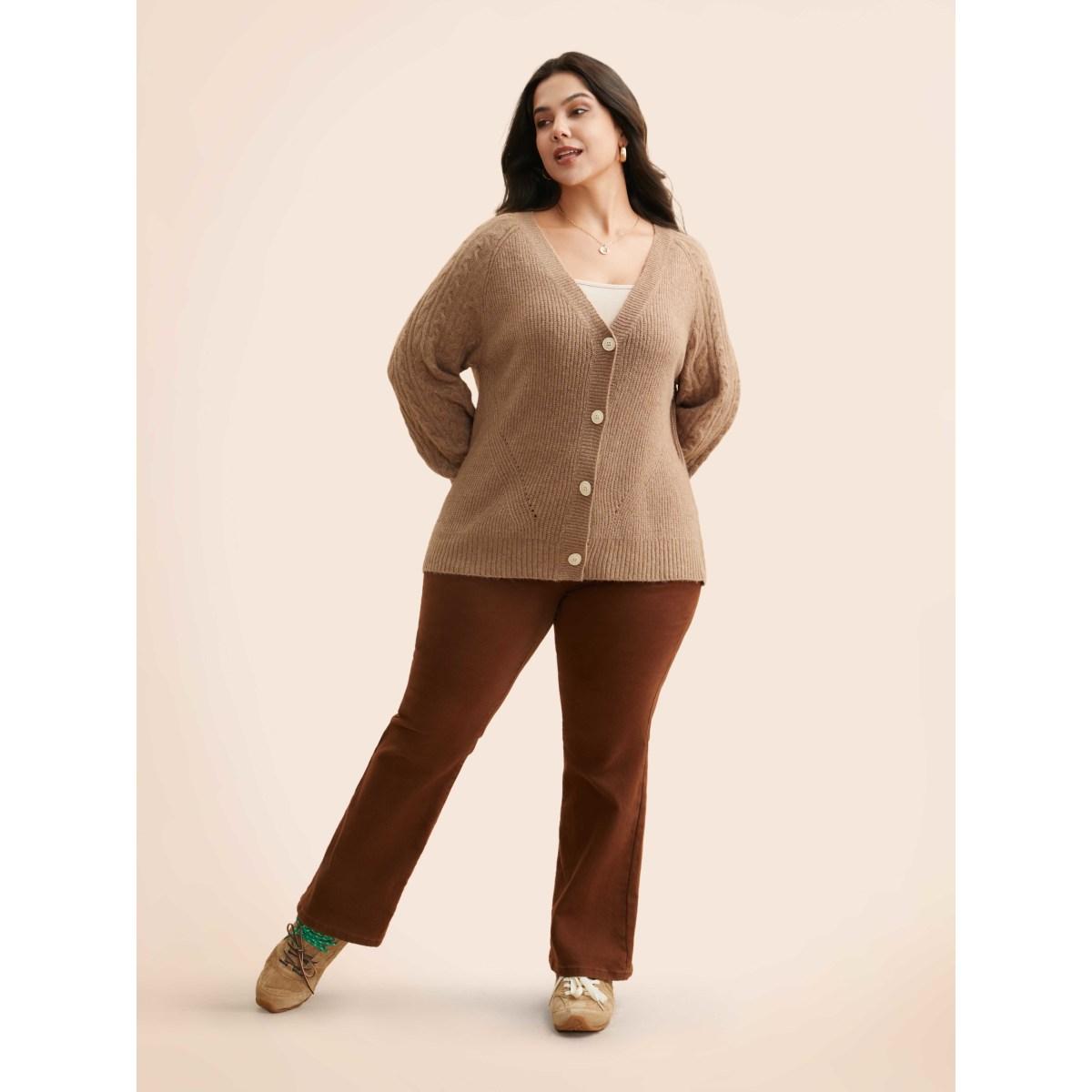 Plus Size Supersoft V-Neck Cable Knit Cardigan Browncoffeecolor Women Casual Loose Long Sleeve Everyday Cardigans BloomChic 30/6X