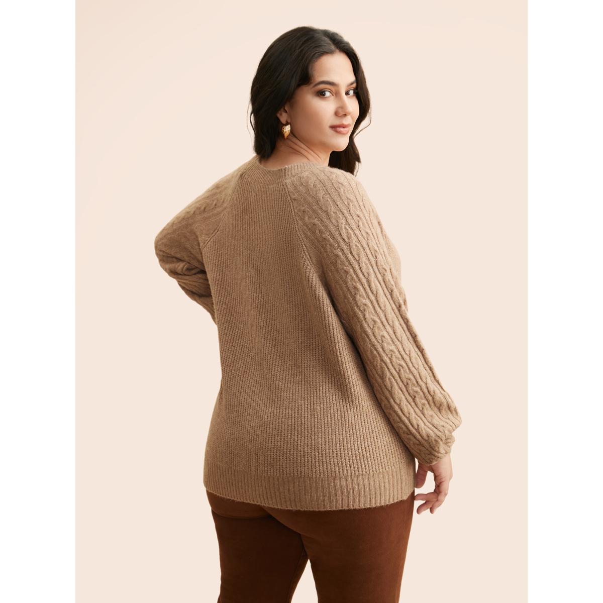 Plus Size Airy Cozy Solid Raglan Sleeve Wool Cardigan LightBrown Women Casual Loose Long Sleeve Everyday Cardigans BloomChic 10/M