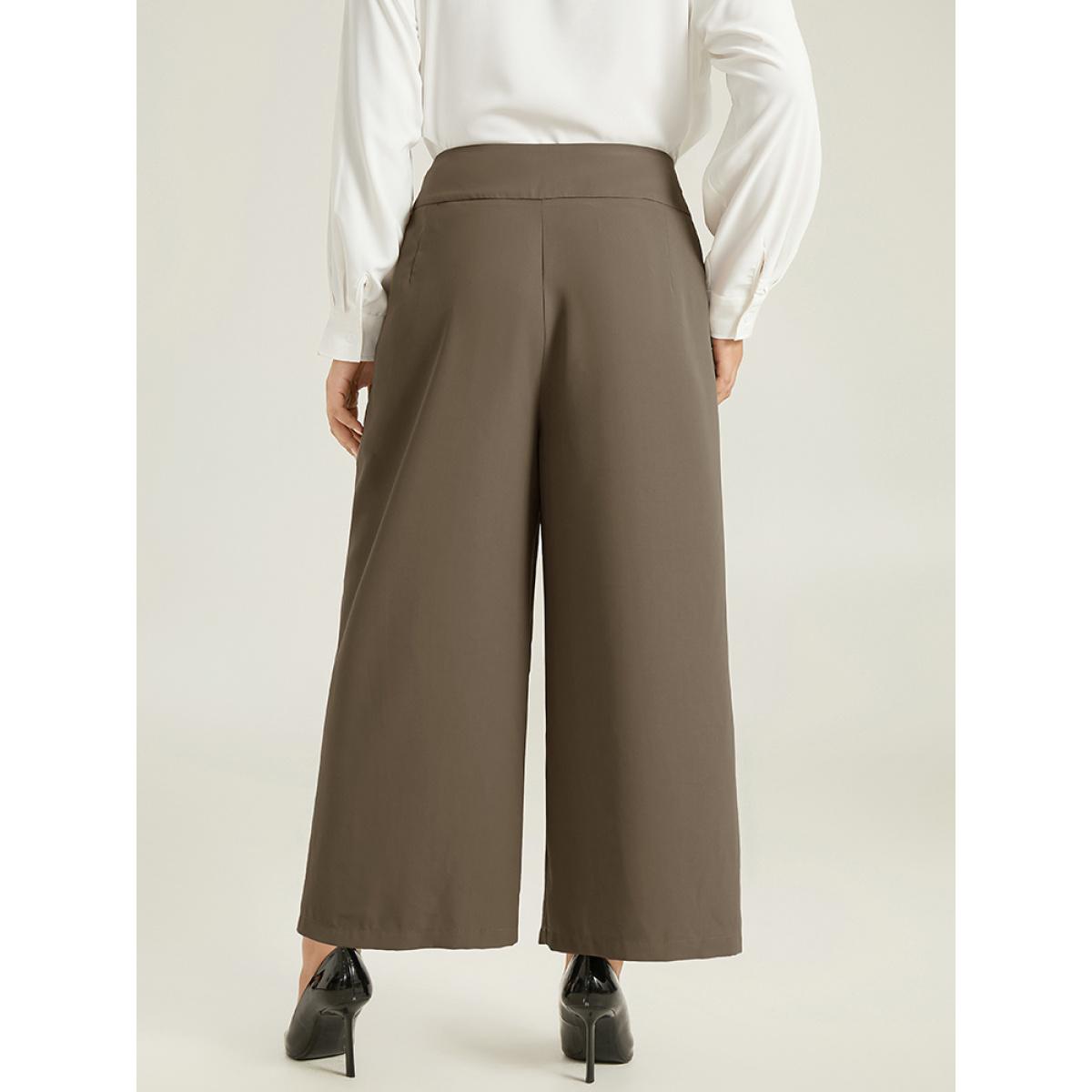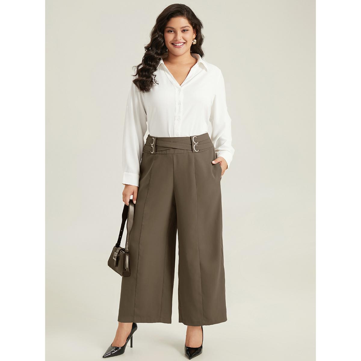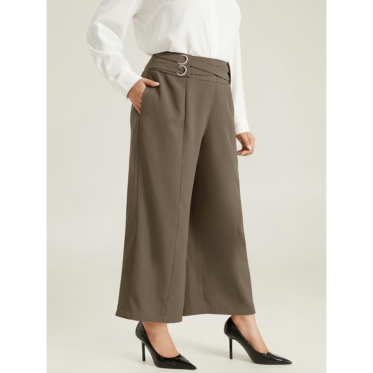 Plus Size Anti-Wrinkle High Rise Control Metal Detail Pants Women DarkBrown Office Wide Leg High Rise Work Pants BloomChic 18-20/2X