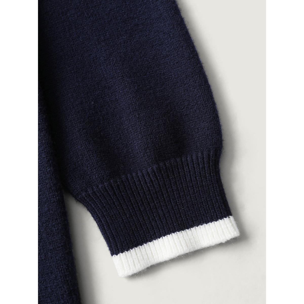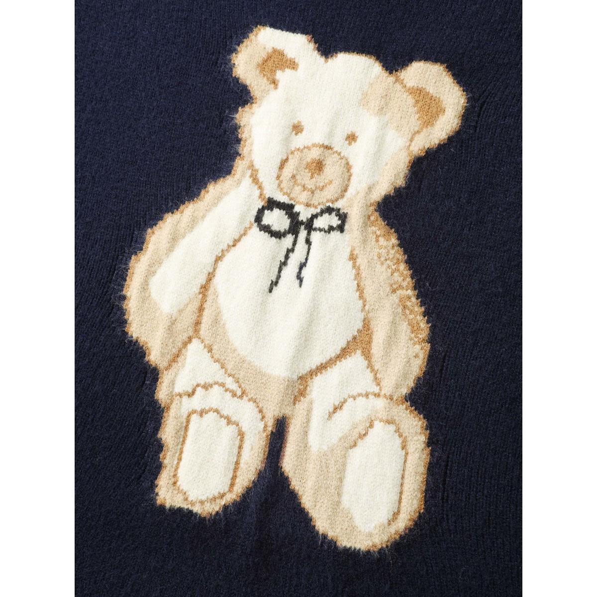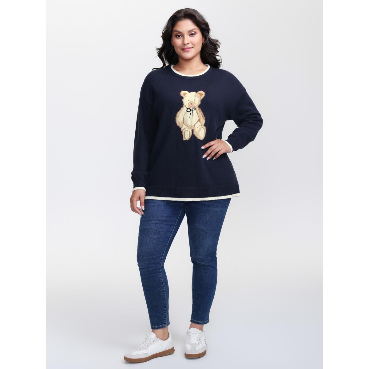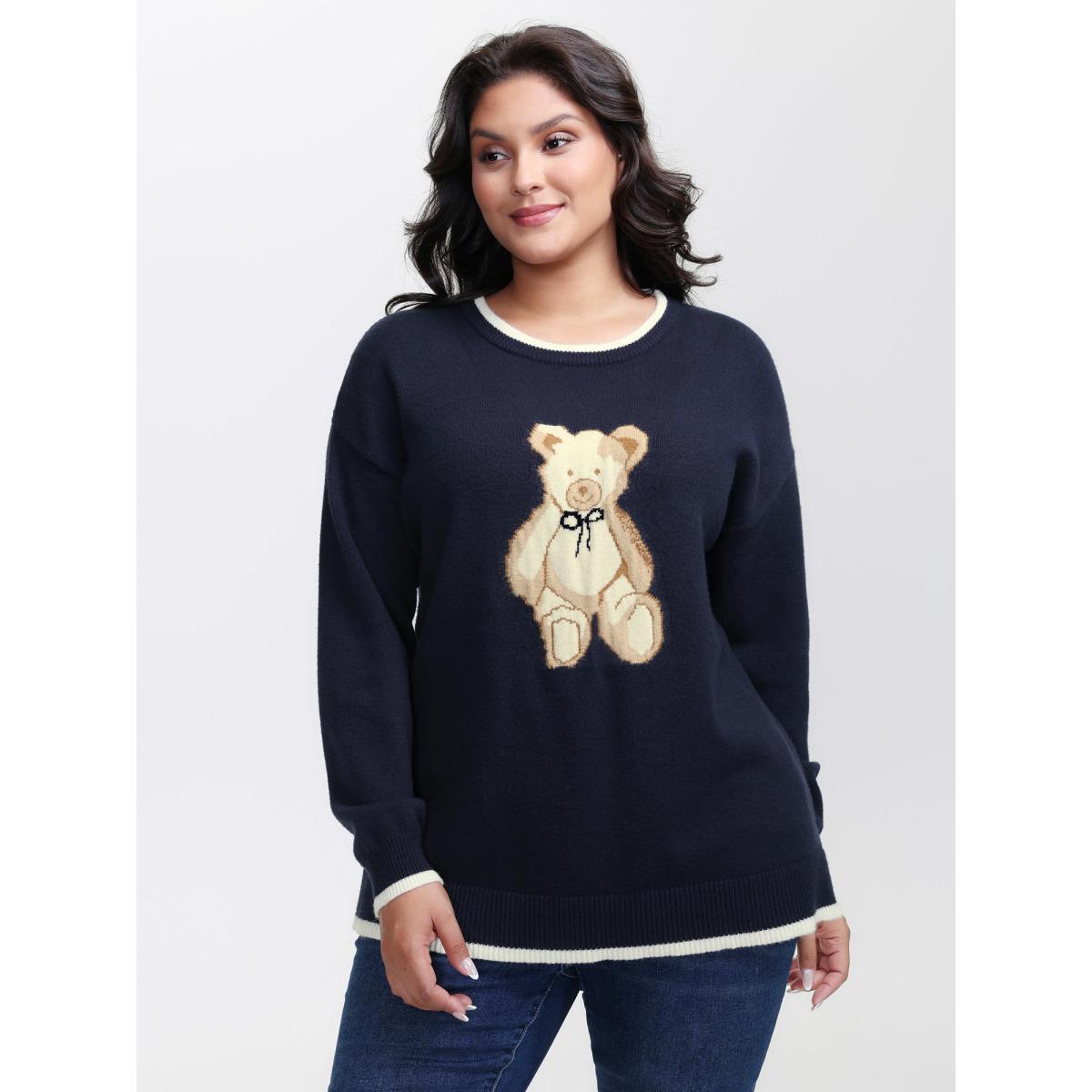 Plus Size Bear Motif Jacquard Color Contrast Pullover Navy Women Playful Loose Long Sleeve Round Neck Casual Pullovers BloomChic 18-20/2X