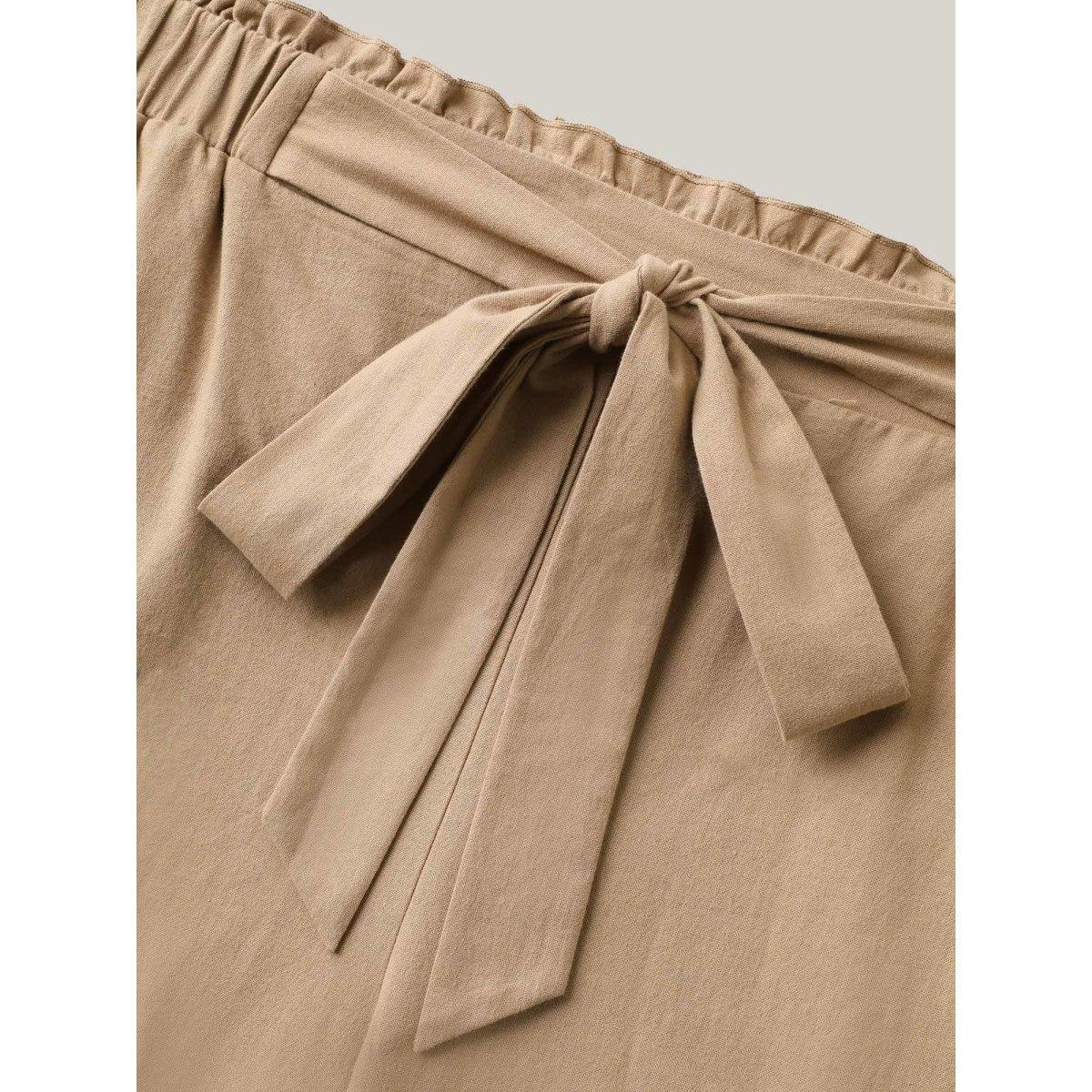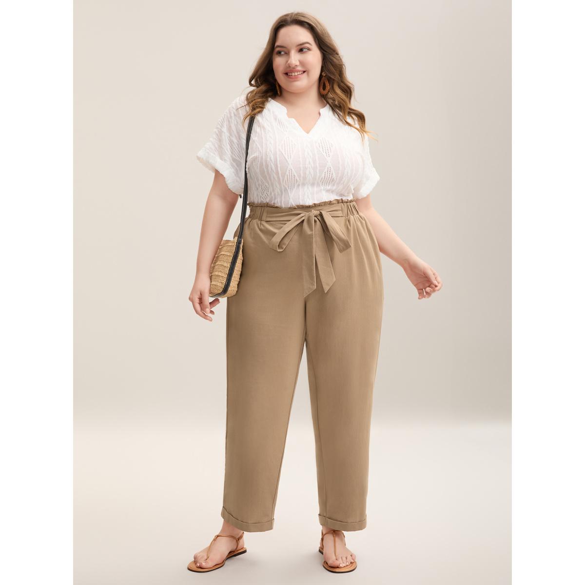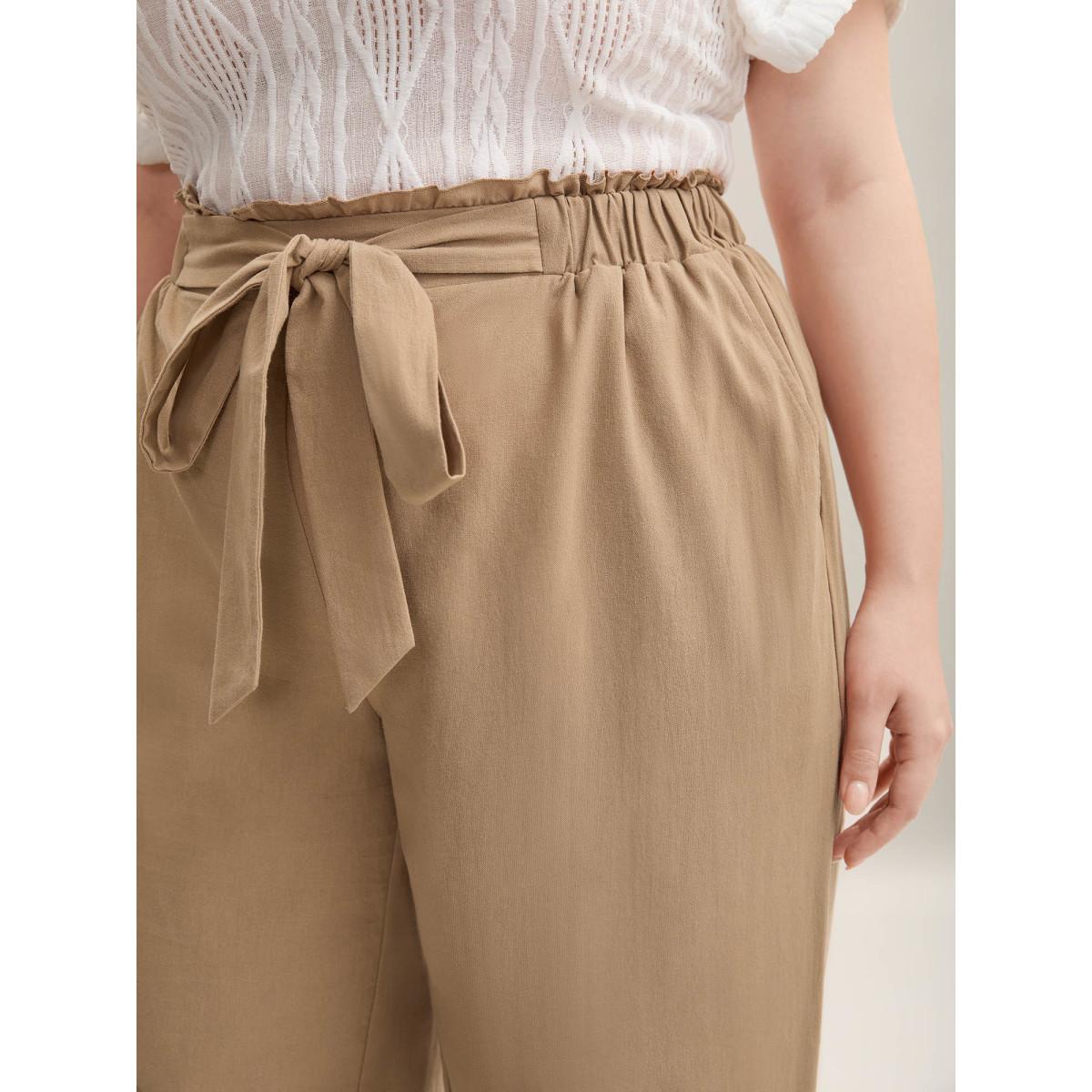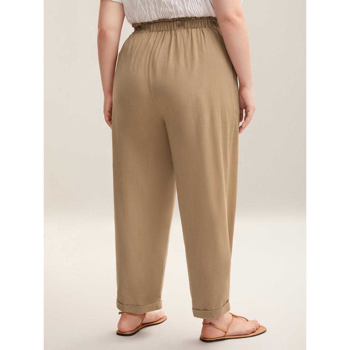 Plus Size Belted Smocked Straight-Leg Pants Women LightBrown Resort Straight Leg Mid Rise Vacation Pants BloomChic 12/L
