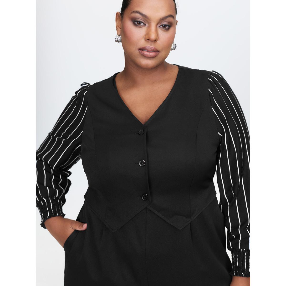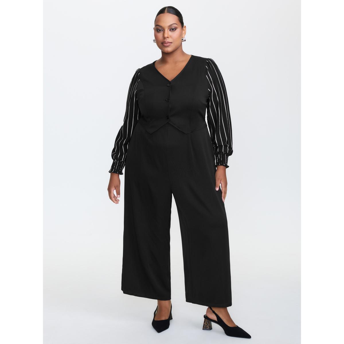 Plus Size Black 2-in-1 Hidden Zipper Jumpsuit Women Office Long Sleeve V-neck Office Loose Jumpsuits BloomChic 18-20/2X