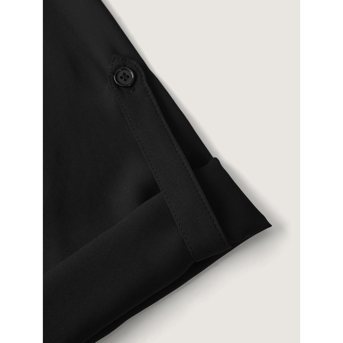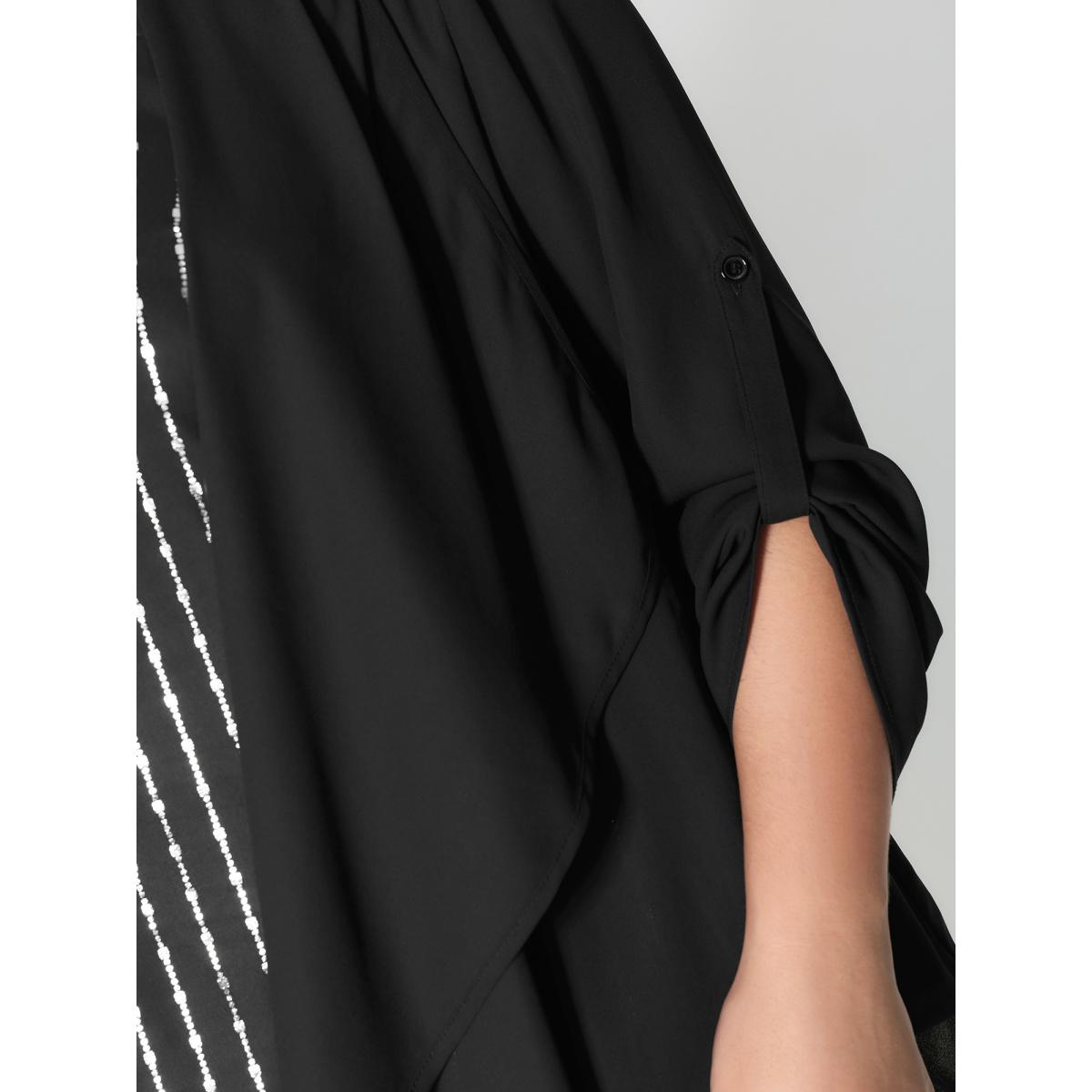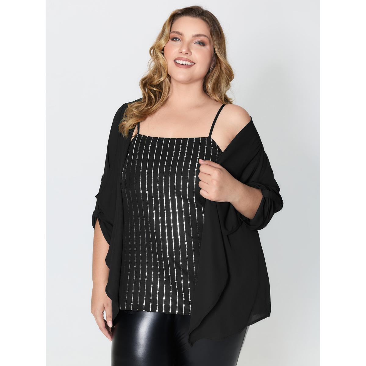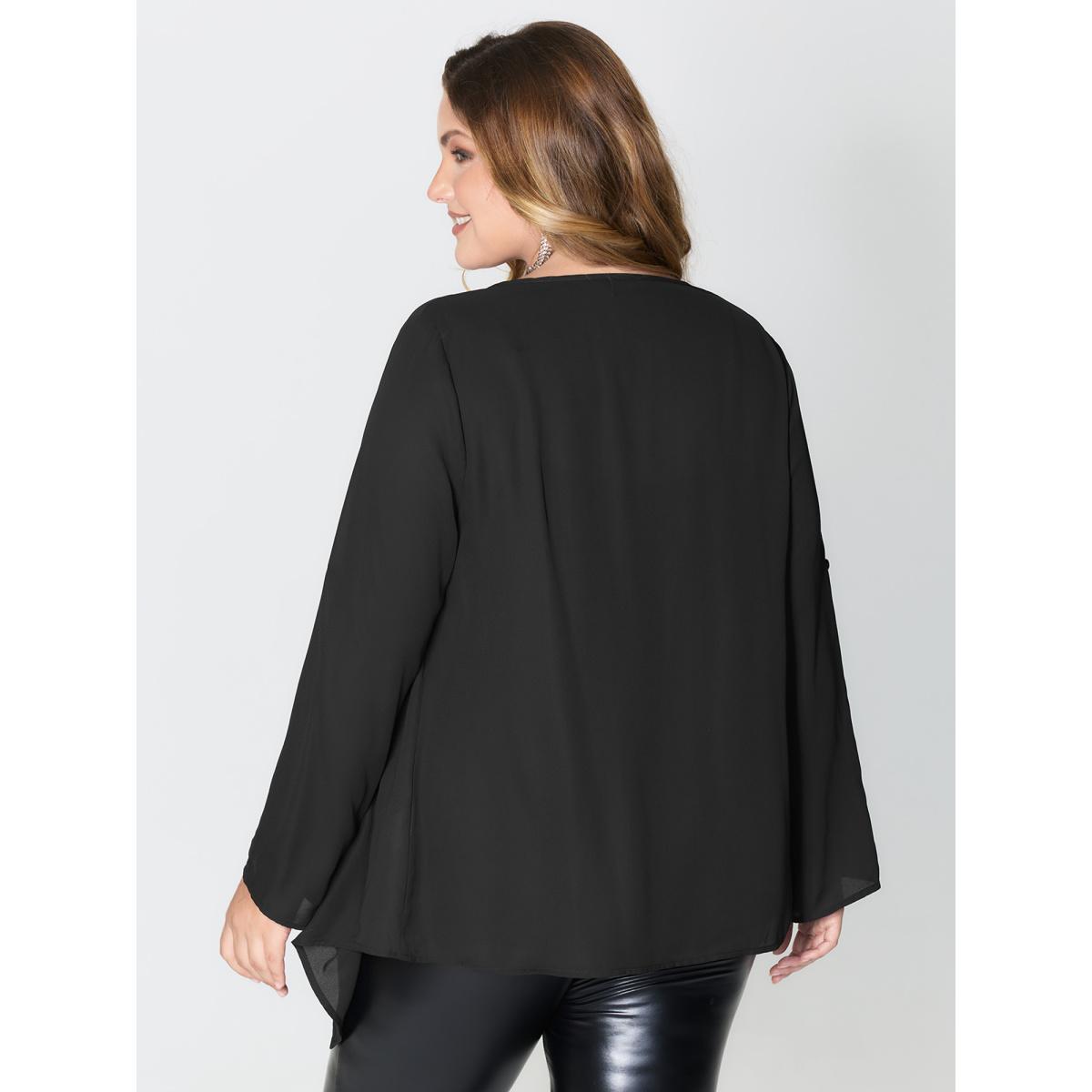 Plus Size Black Shiny Silk Two-Piece Ruffled Blouse Women Party&Cocktail Extra Long Sleeve Round Neck Party Blouses BloomChic 14-16/1X