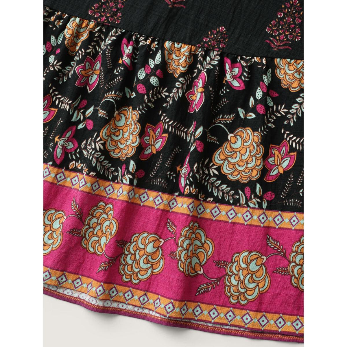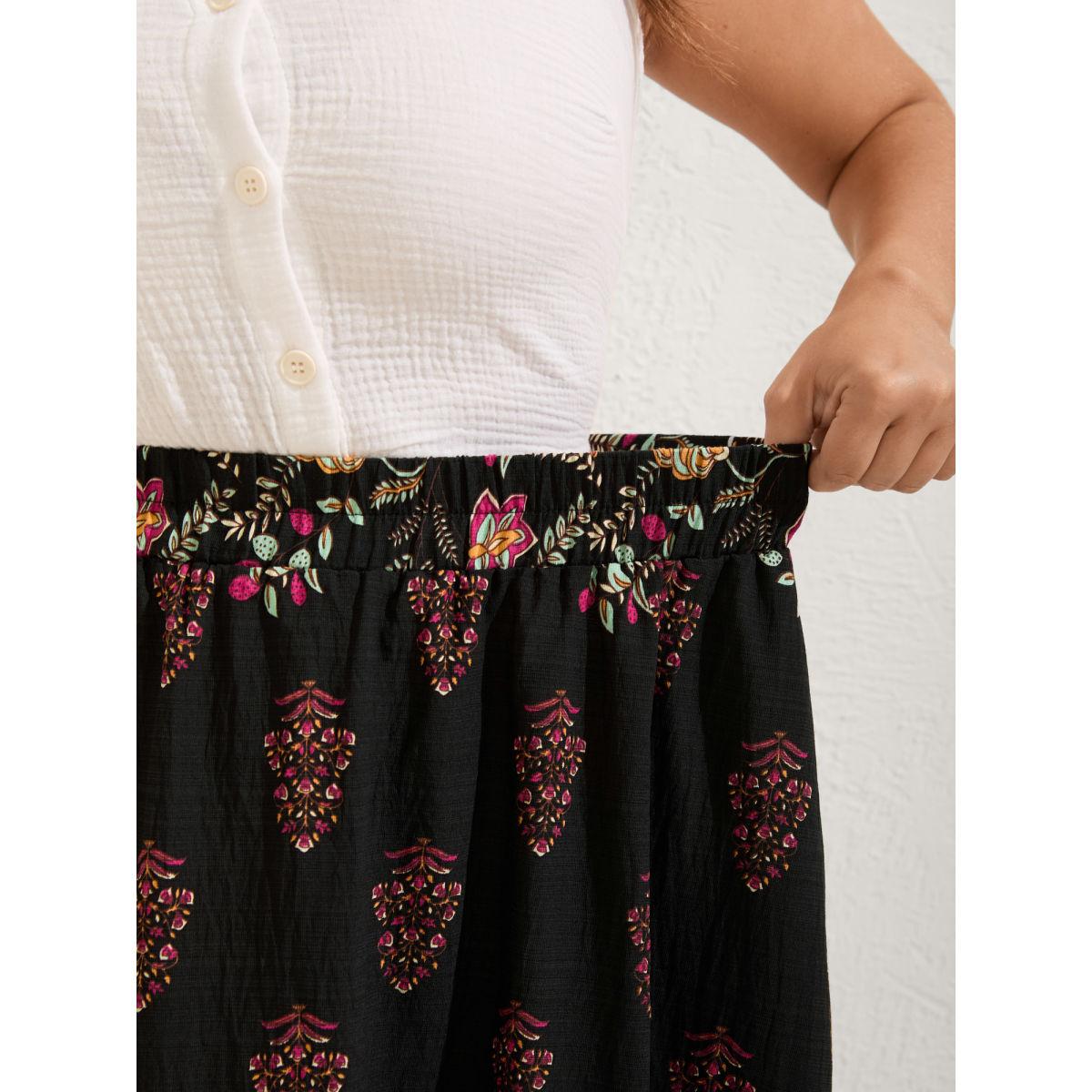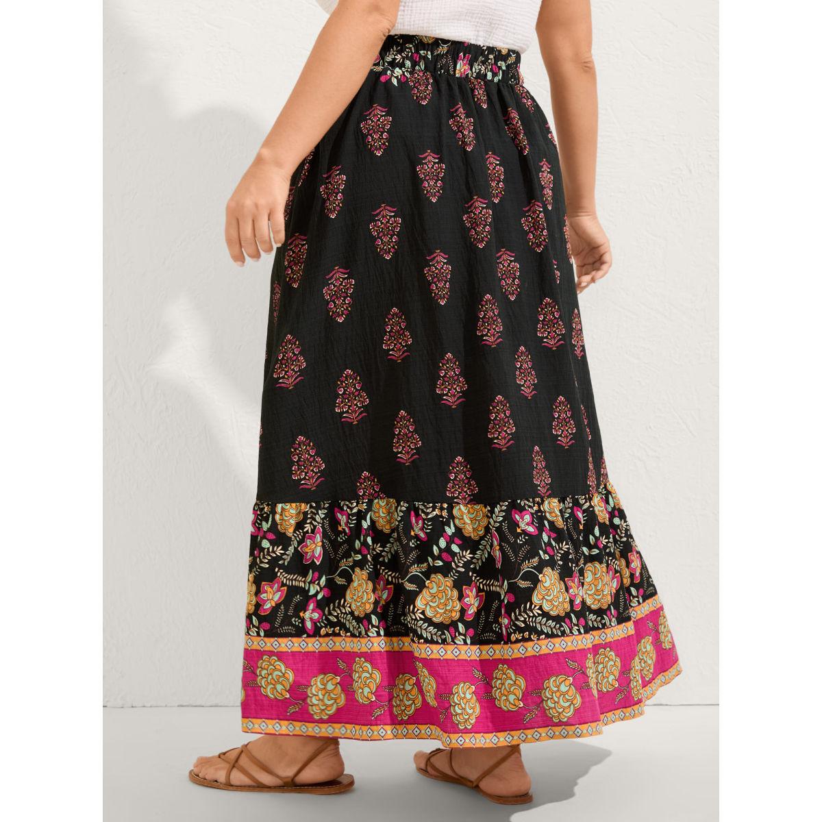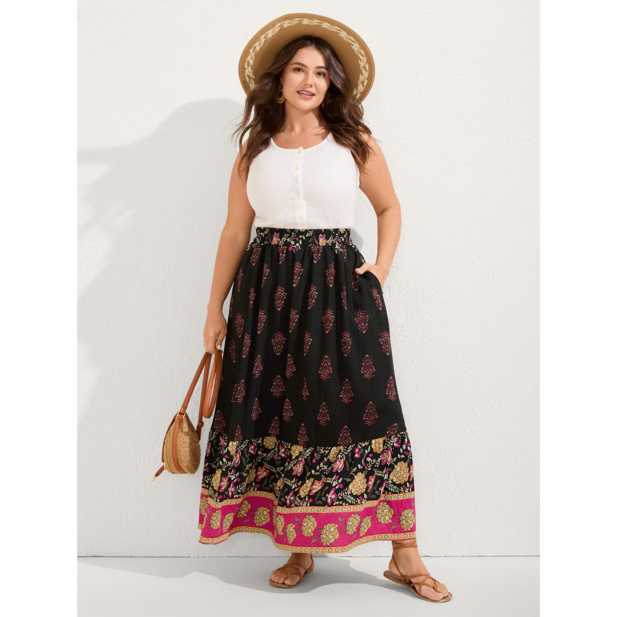Plus Size Boho Floral Waist Stretchy Midi Skirt Women DarkGray Resort Bodycon Low stretch Side seam pocket Vacation Skirts BloomChic 10/M