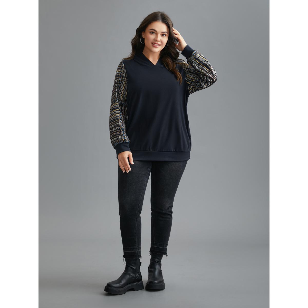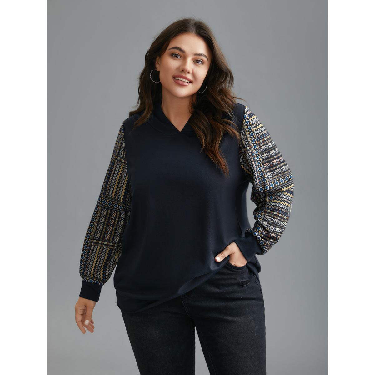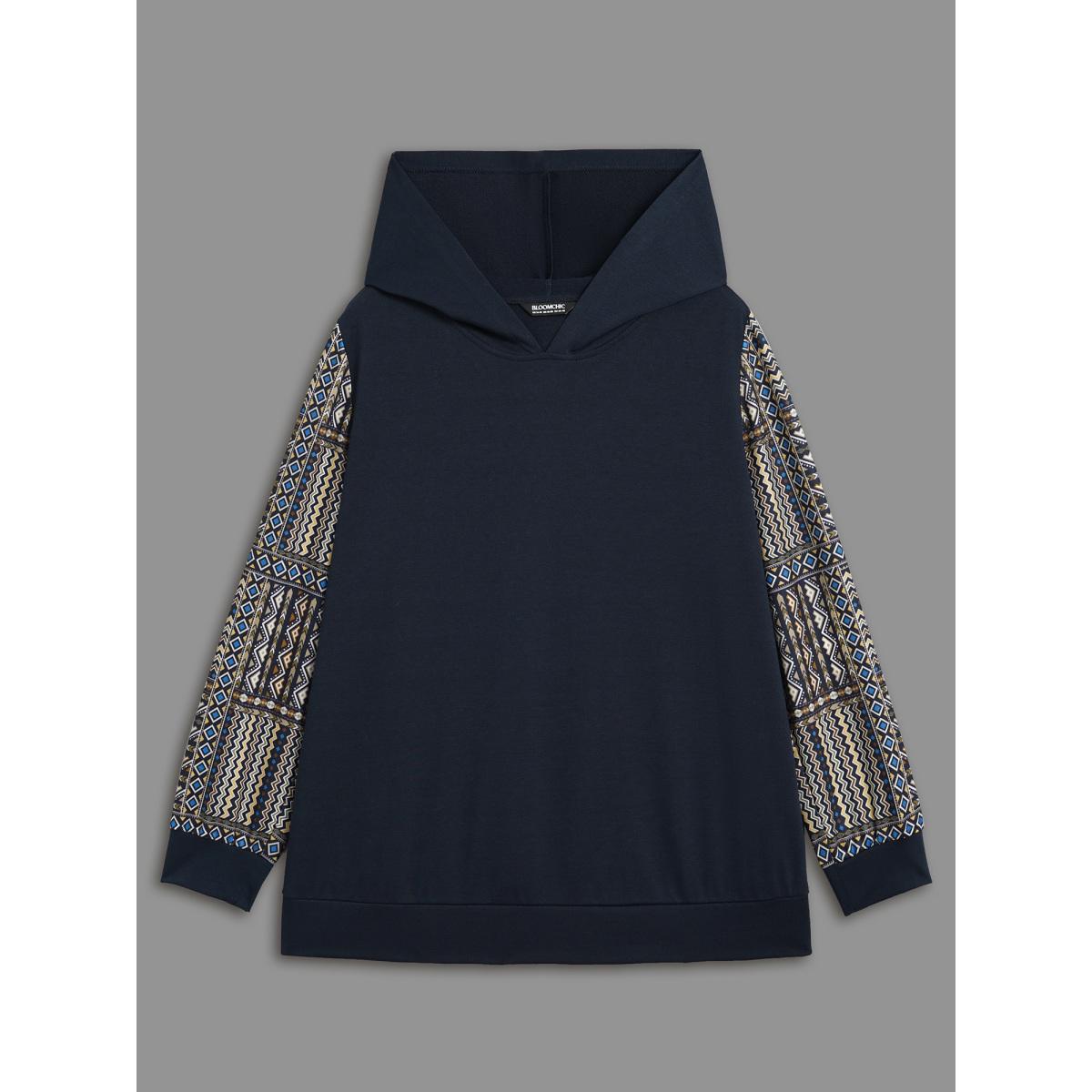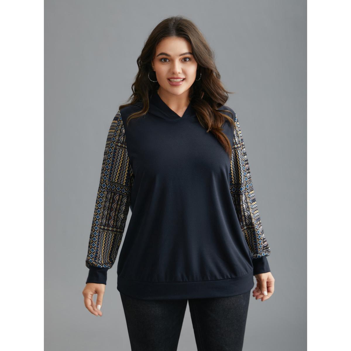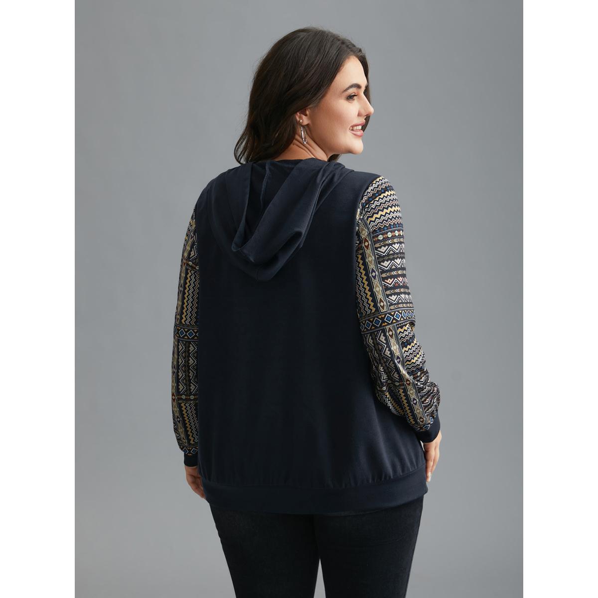 Plus Size Boho Print Contrast Fabric Hooded Sweatshirt Women Midnight Casual Contrast Hooded Everyday Sweatshirts BloomChic 14-16/1X