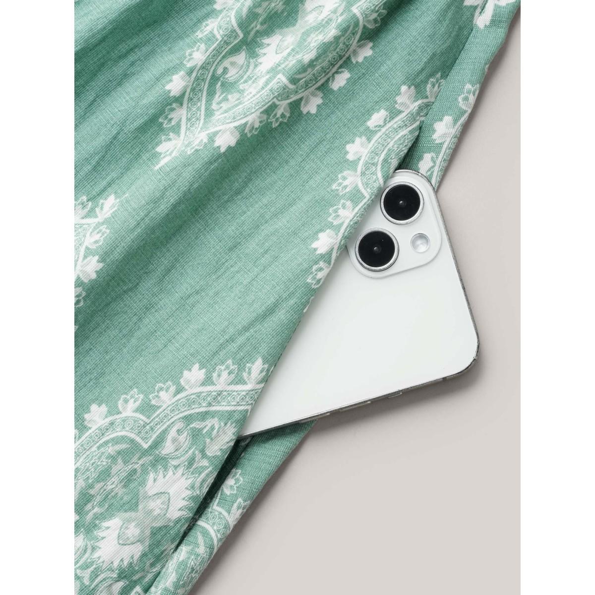 Plus Size Boho Print Waist Defining Midi Dress Sage Women Boho Non Heart neckline Half Sleeve Curvy BloomChic 28/5X Product Image