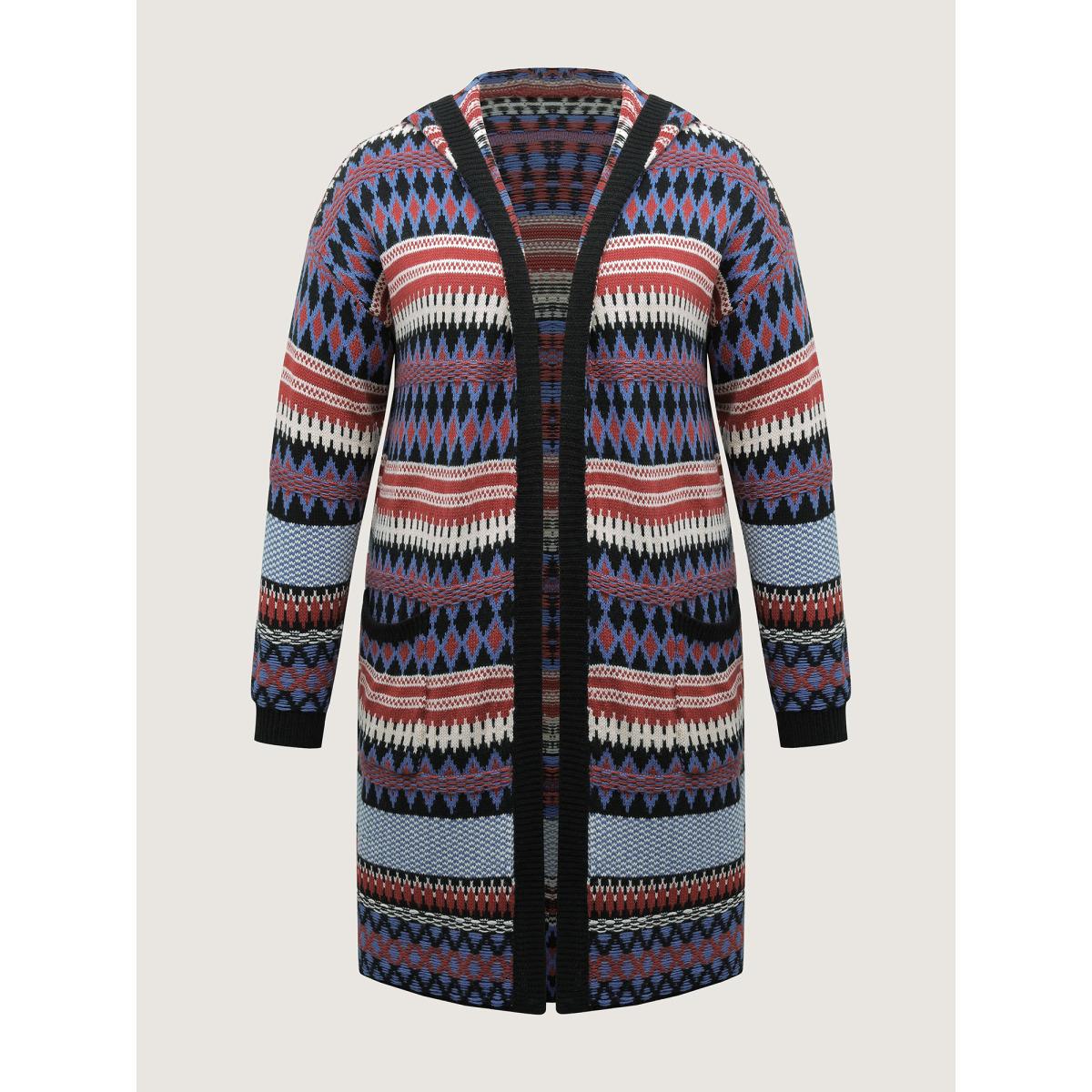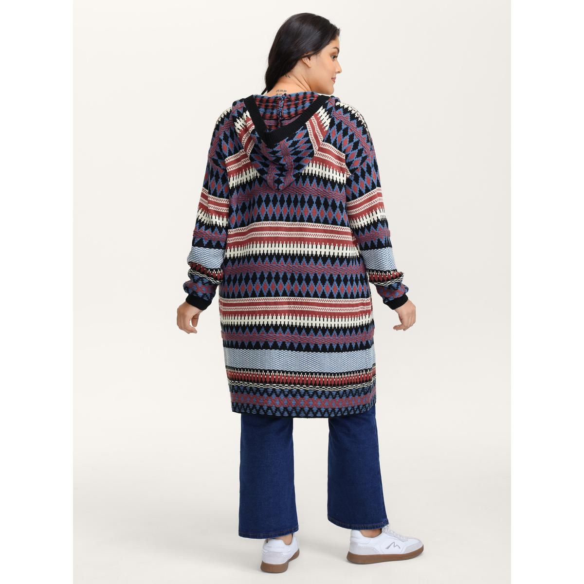 Plus Size Boho Stripe Pockets Hooded Long Knit Cardigan Black Women Leisure Loose Long Sleeve Casual Cardigans BloomChic 10/M Product Image