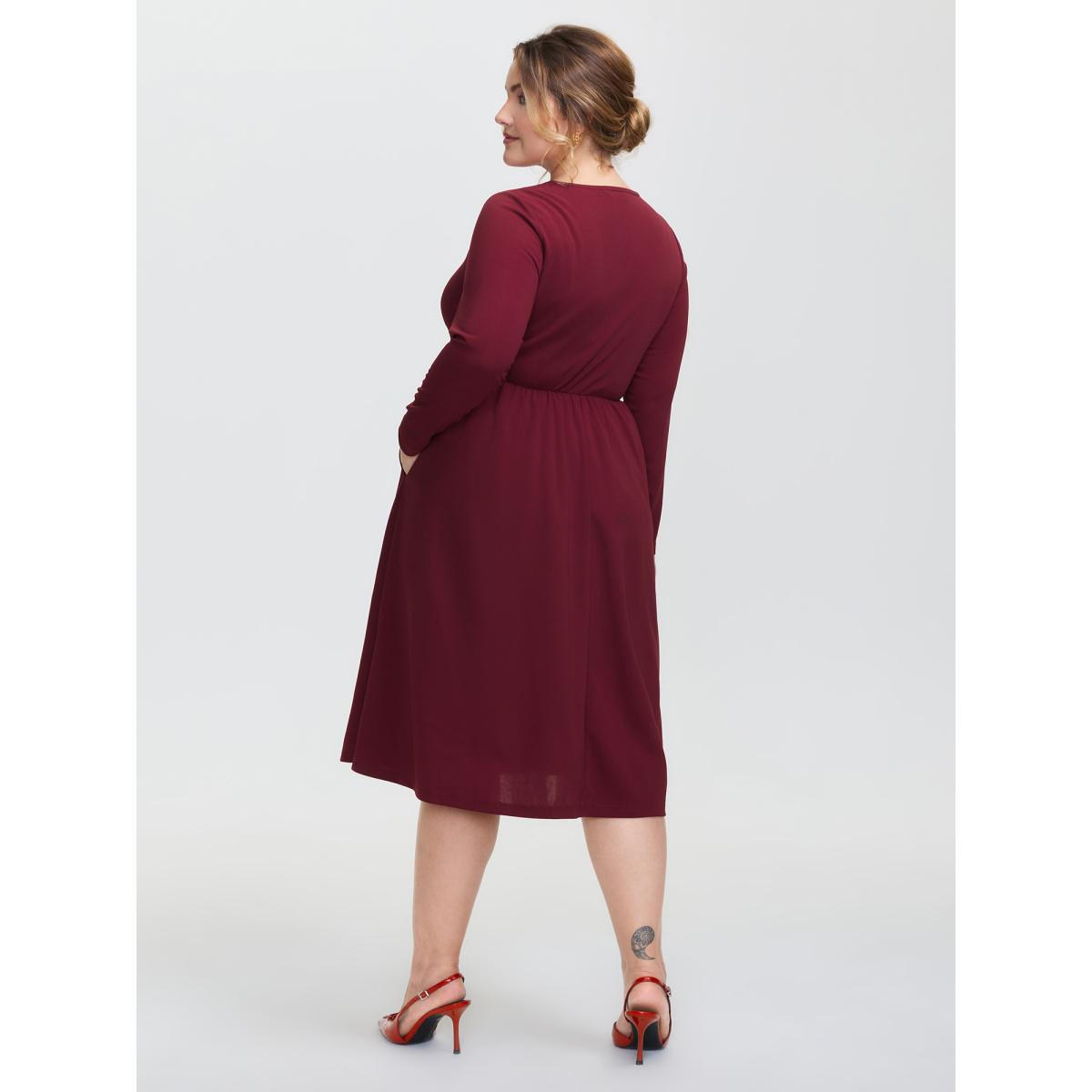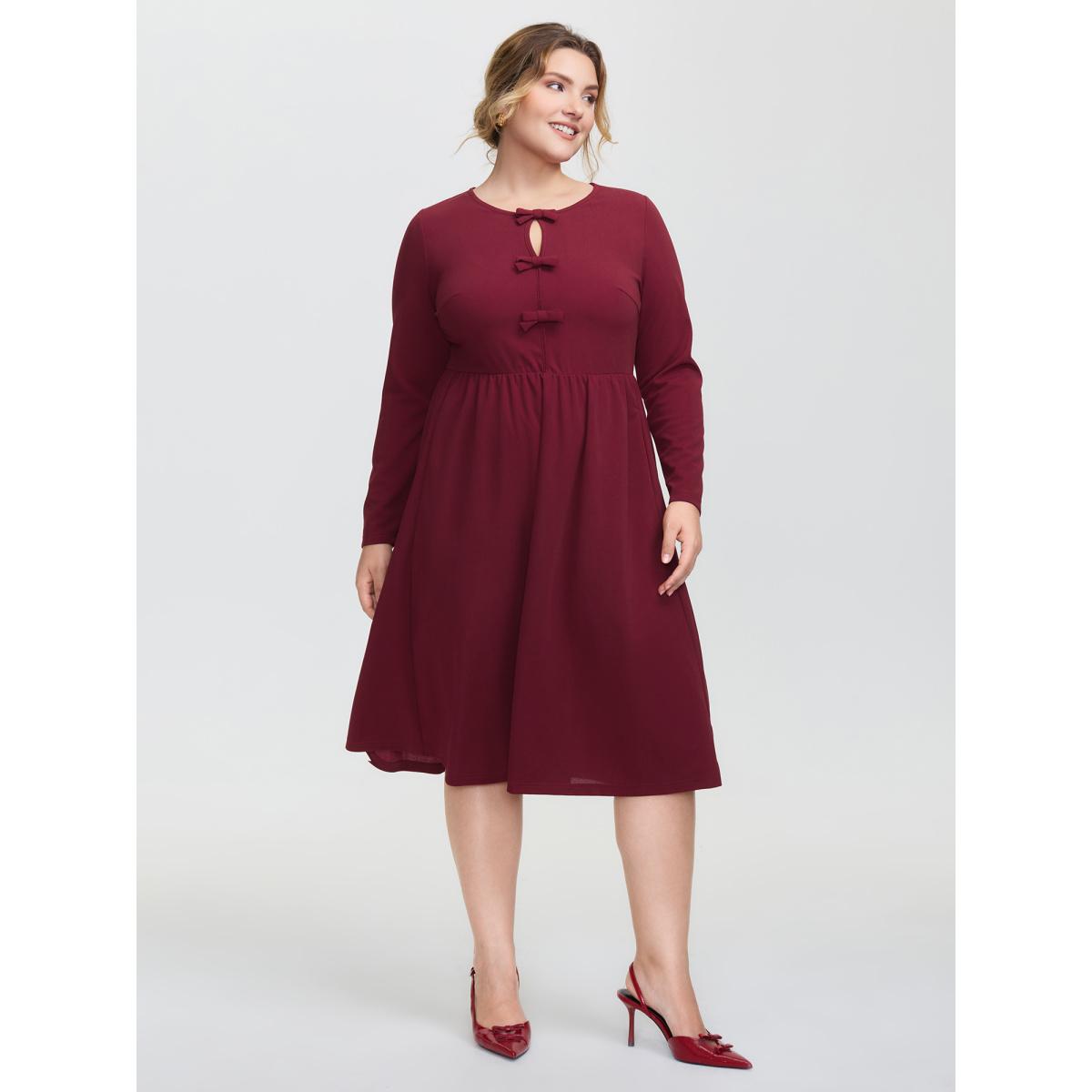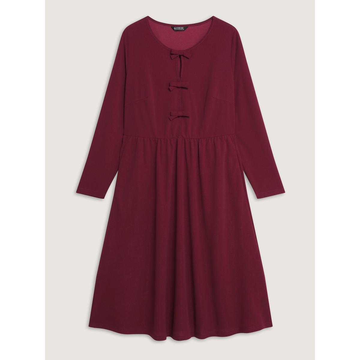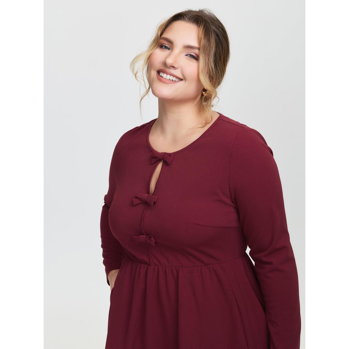Plus Size Bowknot Detail Pockets Knit Midi Dress Deepred Women Timeless Round Neck Long Sleeve Curvy BloomChic 12/L