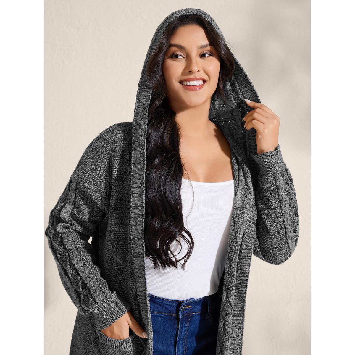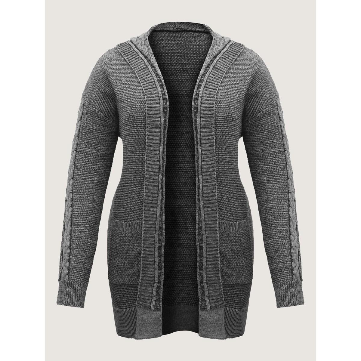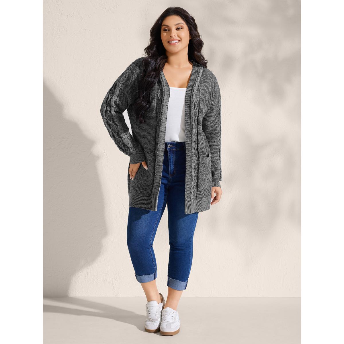 Plus Size Cable Knit Front-Open Knit Cardigan DimGray Women Leisure Loose Long Sleeve Casual Cardigans BloomChic 12/L