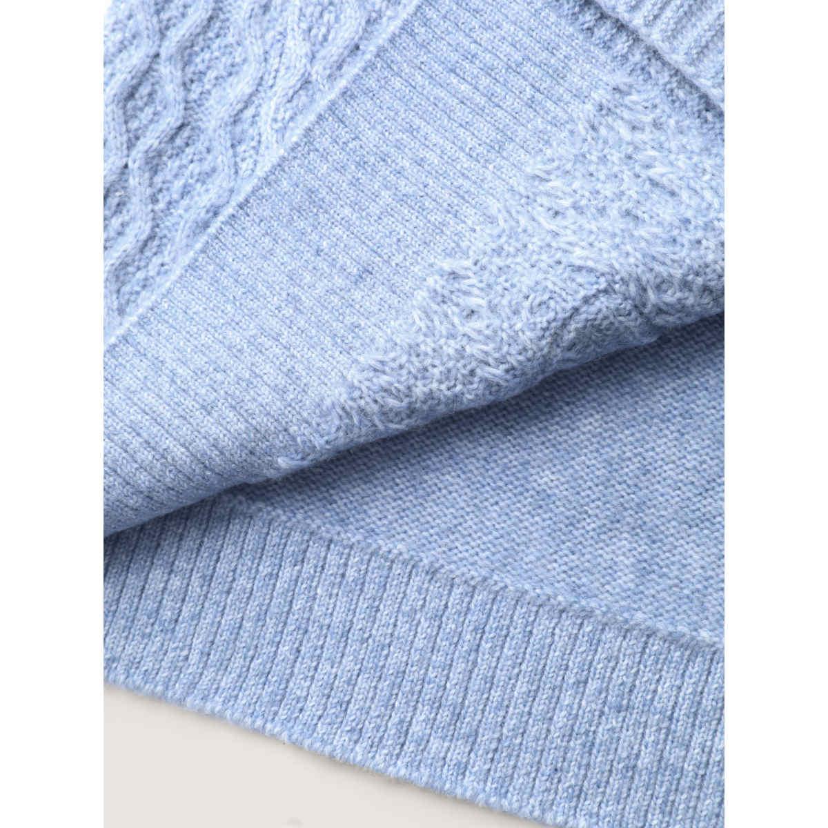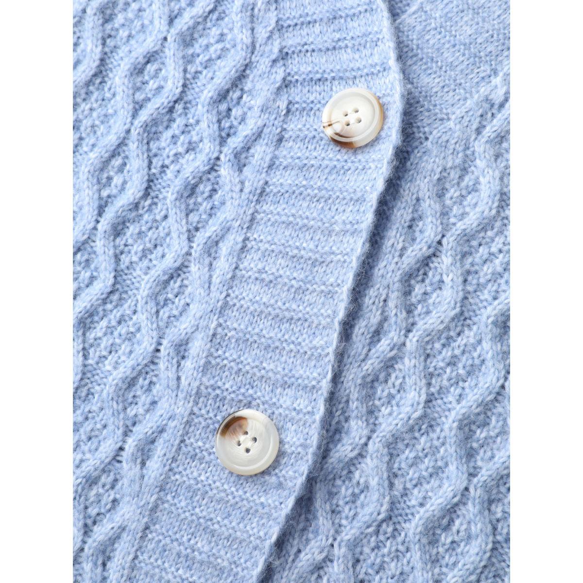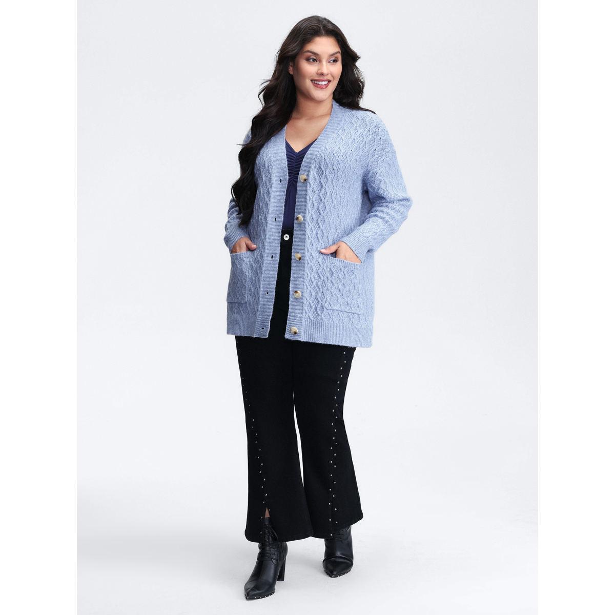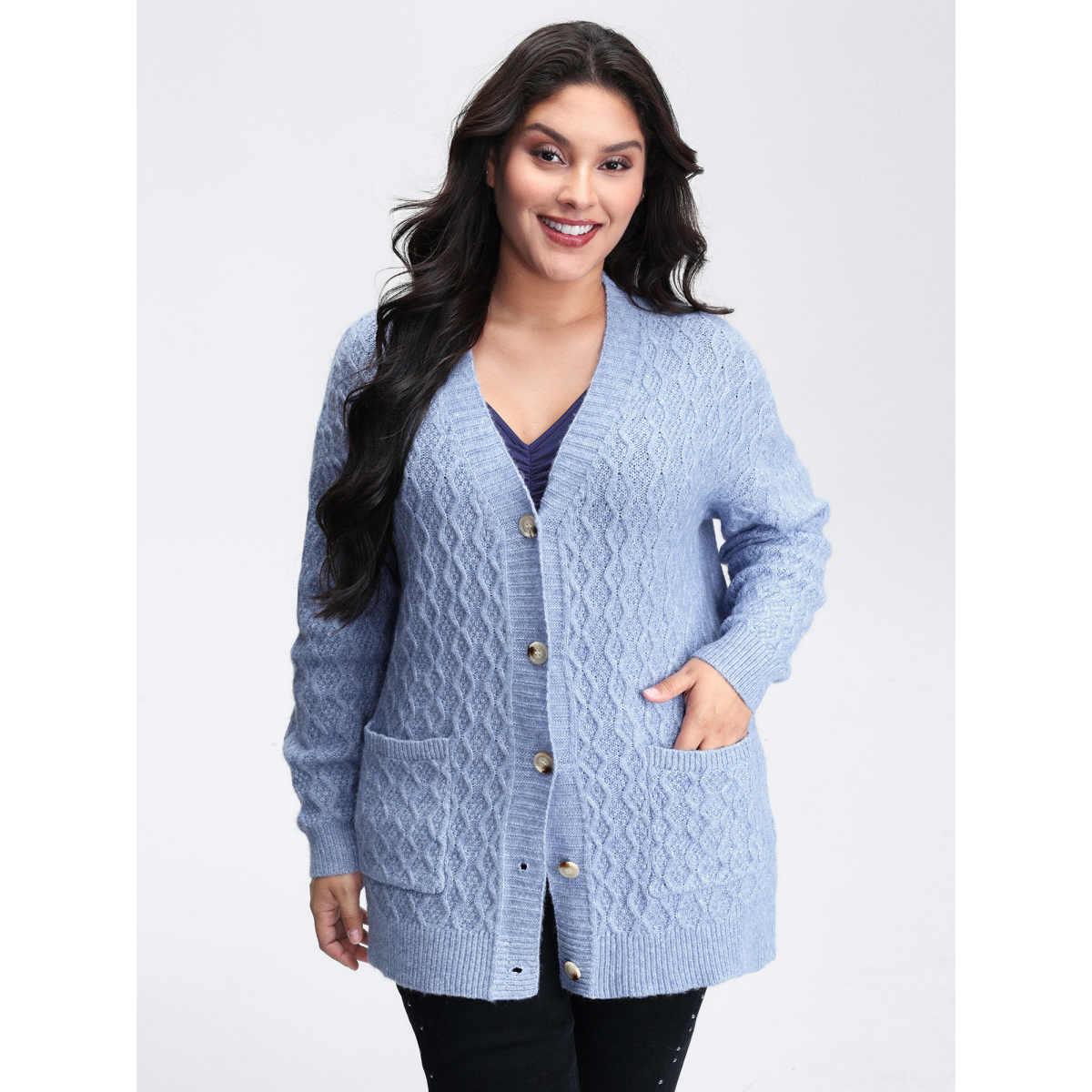 Plus Size Texture Cable Knit Patched Pocket Cardigan Indigo Women Casual Long Sleeve Everyday Cardigans BloomChic 14-16/1X