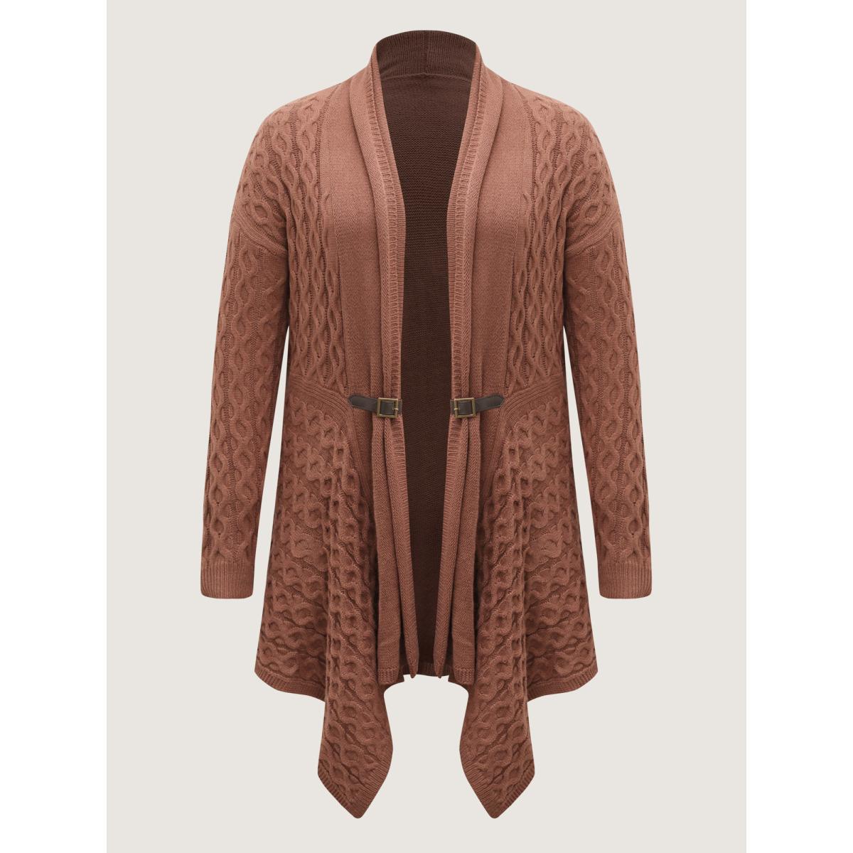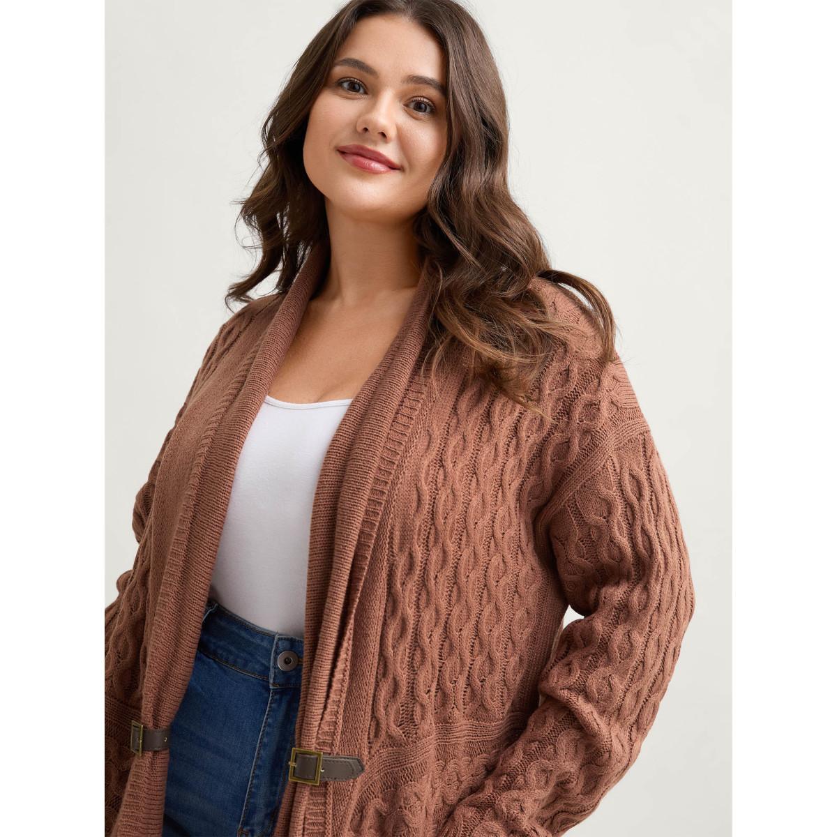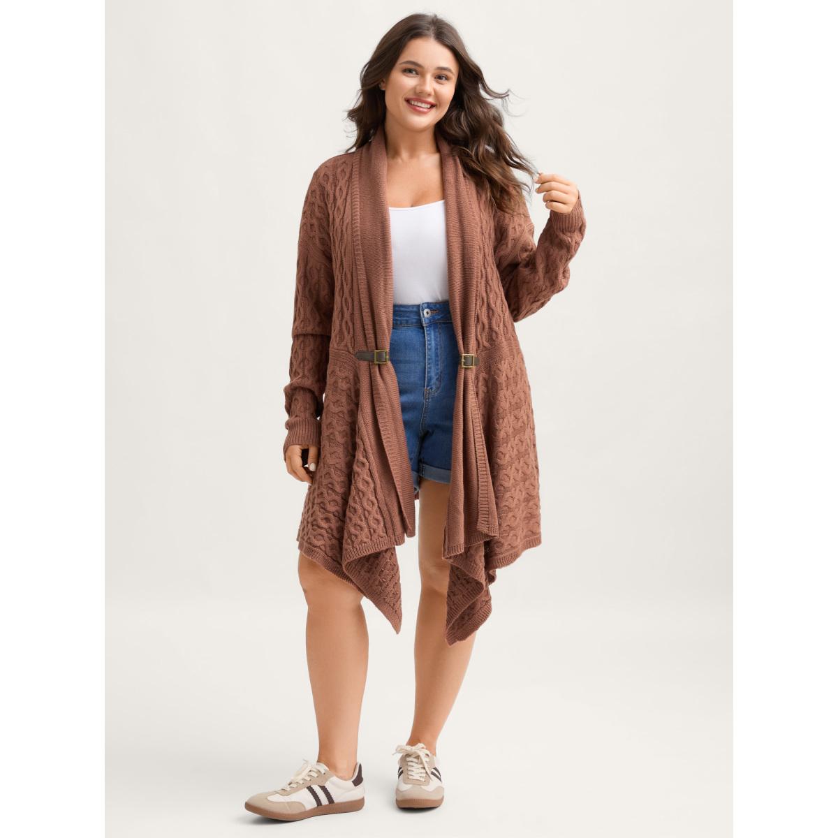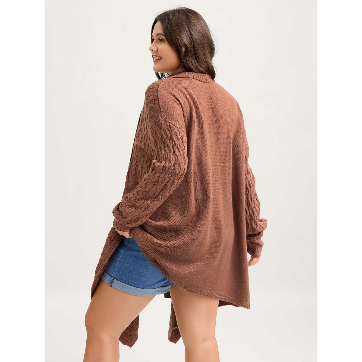Plus Size Cable Knot Irregular Hem Cardigan Yellowishbrown Women Boho Loose Long Sleeve Vacation Cardigans BloomChic 22-24/3X Product Image