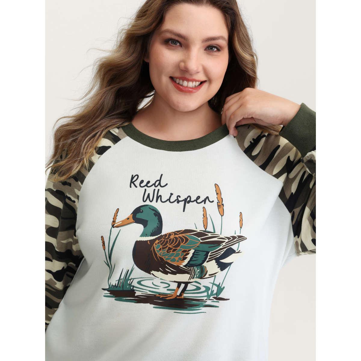 Plus Size Camouflage Contrast Animal Print Sweatshirt Women Sage Leisure Round Neck Casual Sweatshirts BloomChic 12/L