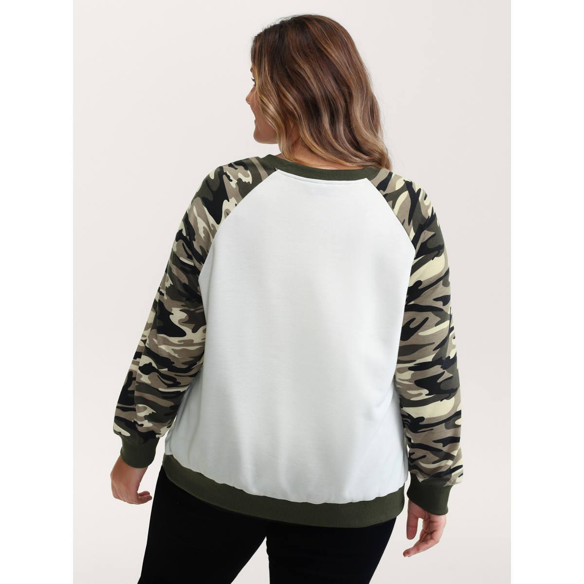 Plus Size Camouflage Contrast Animal Print Sweatshirt Women Sage Leisure Round Neck Casual Sweatshirts BloomChic 12/L Product Image