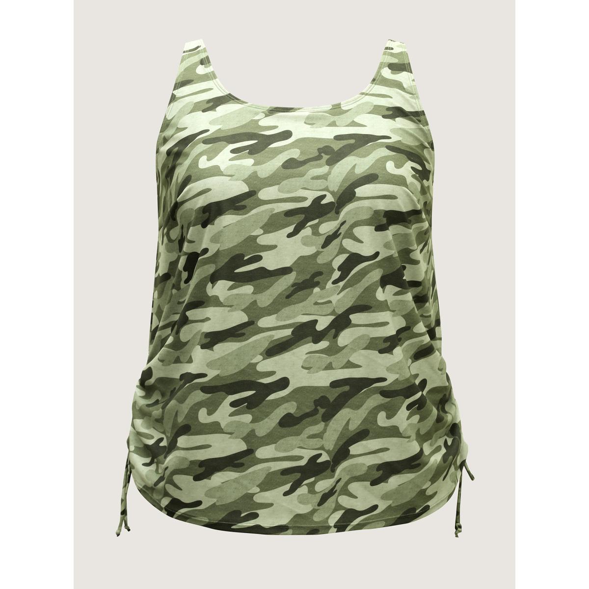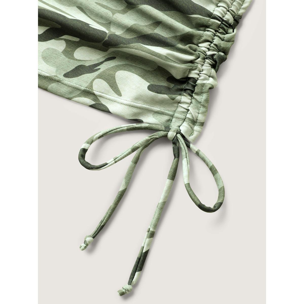 Plus Size Camouflage Print Side Drawstring Swim Top Women's Swimwear ArmyGreen Resort Drawstring High stretch Bodycon U-neck Curve Swim Tops BloomChic 26/4X