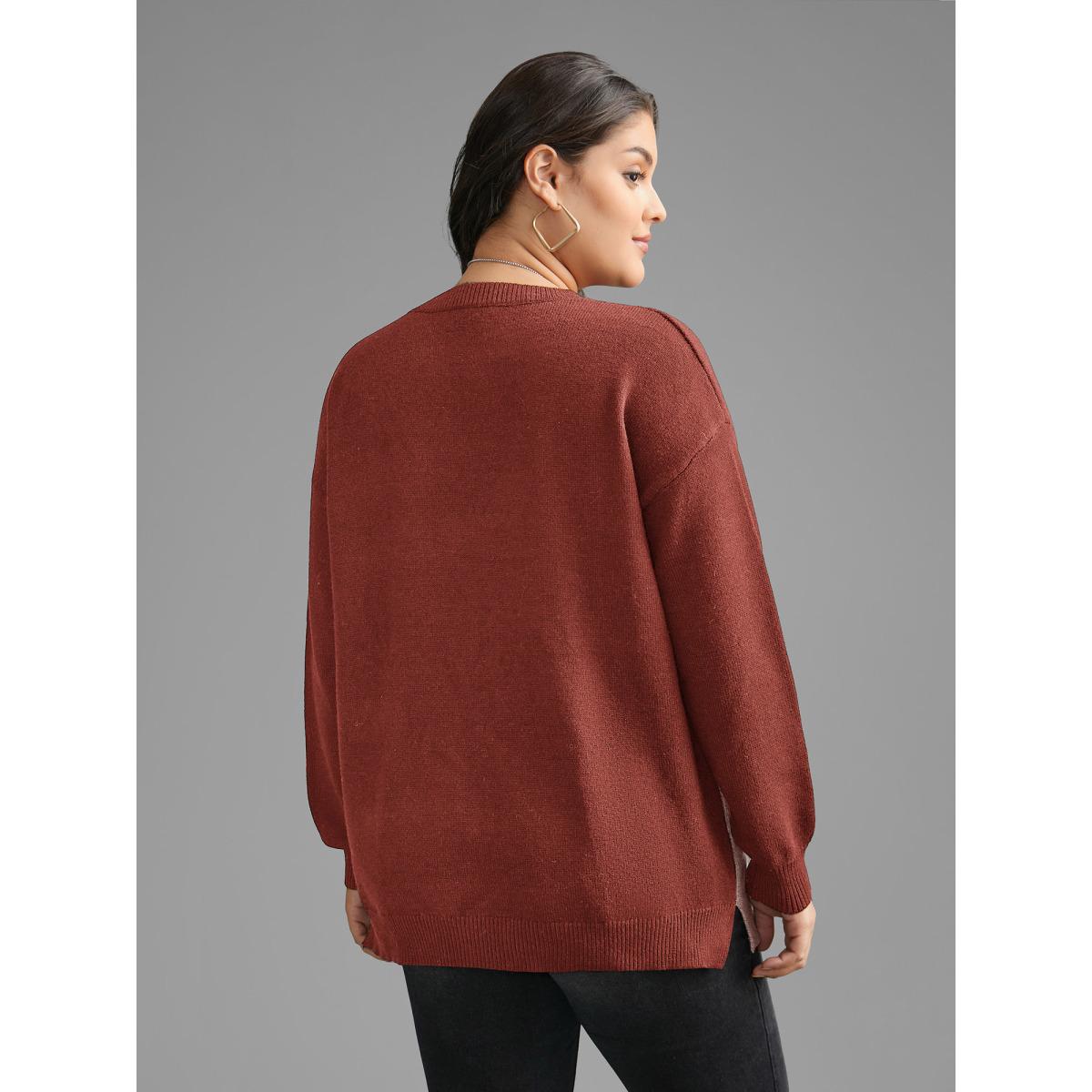 Plus Size Leopard Batwing Sleeve Split Hem Pullover Rust Women Casual Loose Long Sleeve Round Neck Dailywear Pullovers BloomChic 28/5X