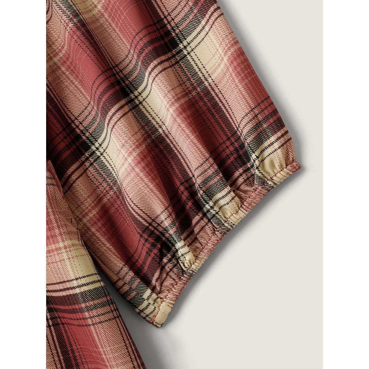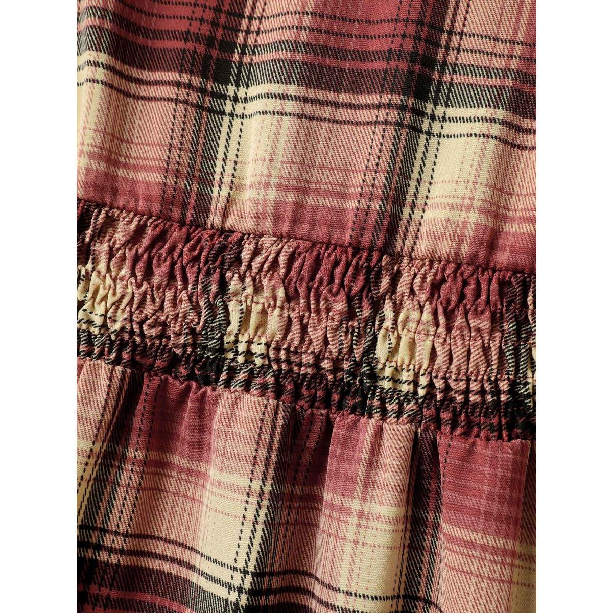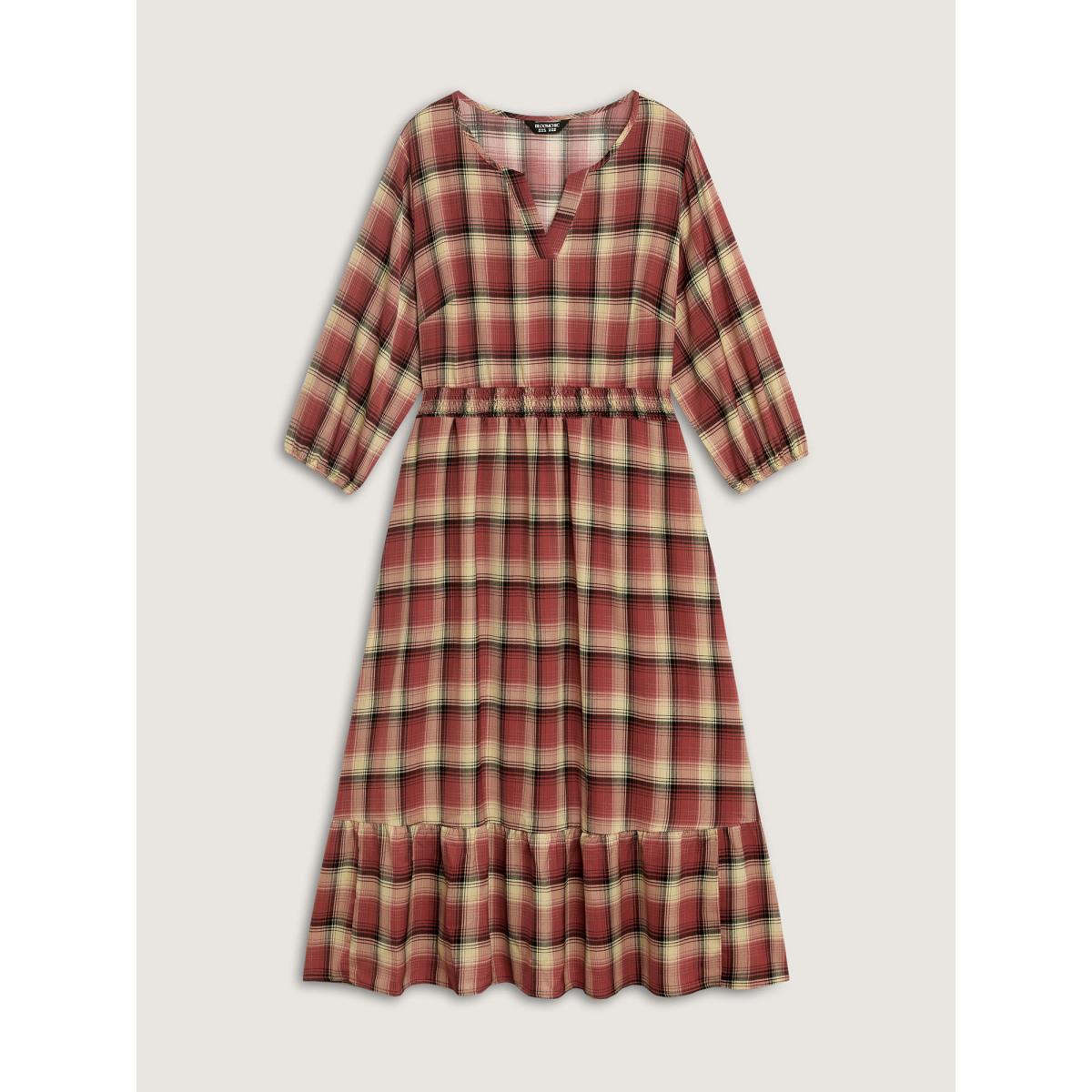 Plus Size Check Print Shirred Waist Tiered Maxi Dress Scarlet Women Timeless Gathered Notched collar Elbow-length sleeve Curvy BloomChic 12/L